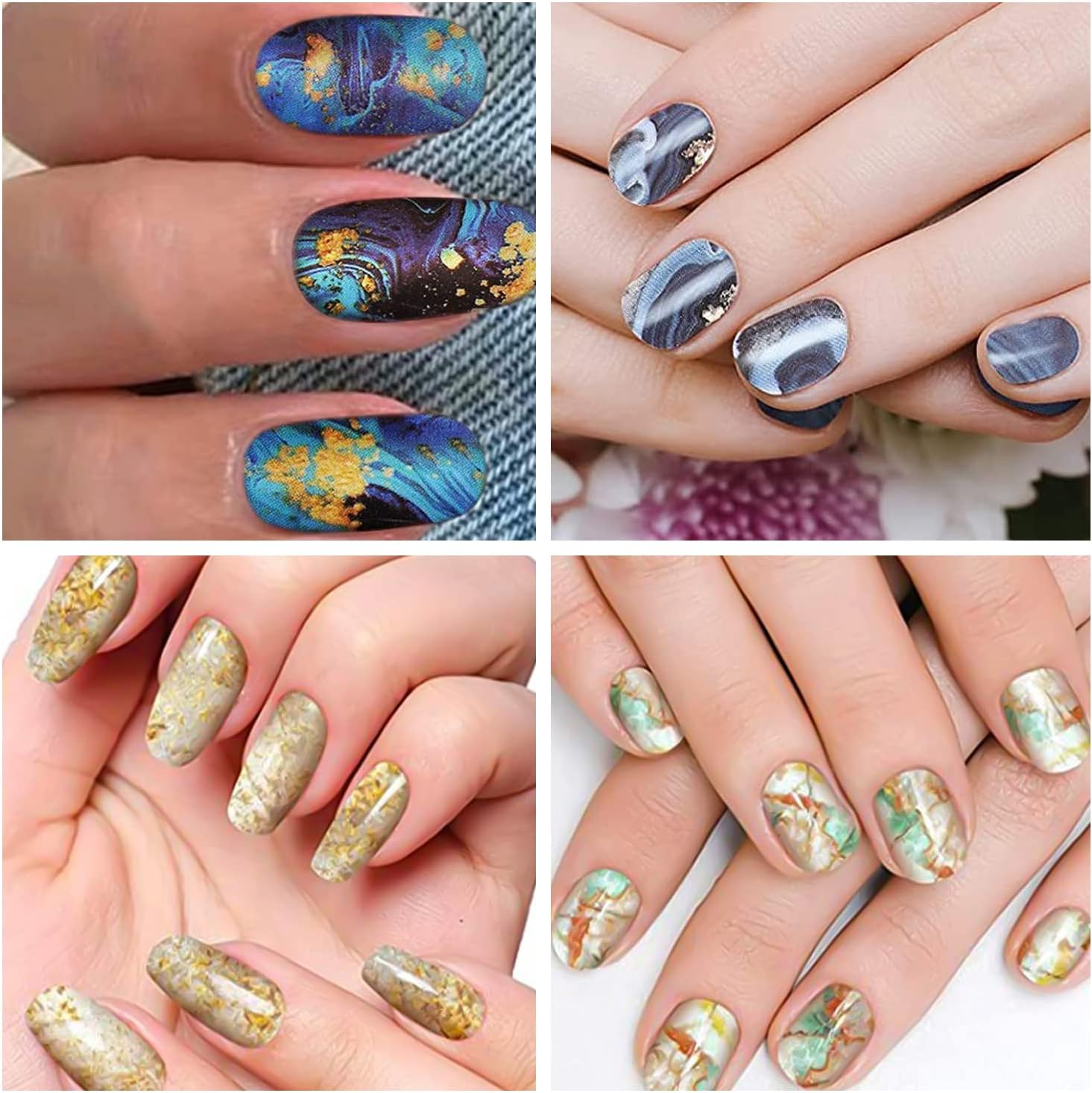 - [Fashion & Marbling Print] -- Natural marble print have various colors, progressive levels and uniform gradients. Inspired by it, when used on nail strips, the gradient halo effect is very natural and the color matching is excellent, which is an effect that ordinary nail salons can't make.