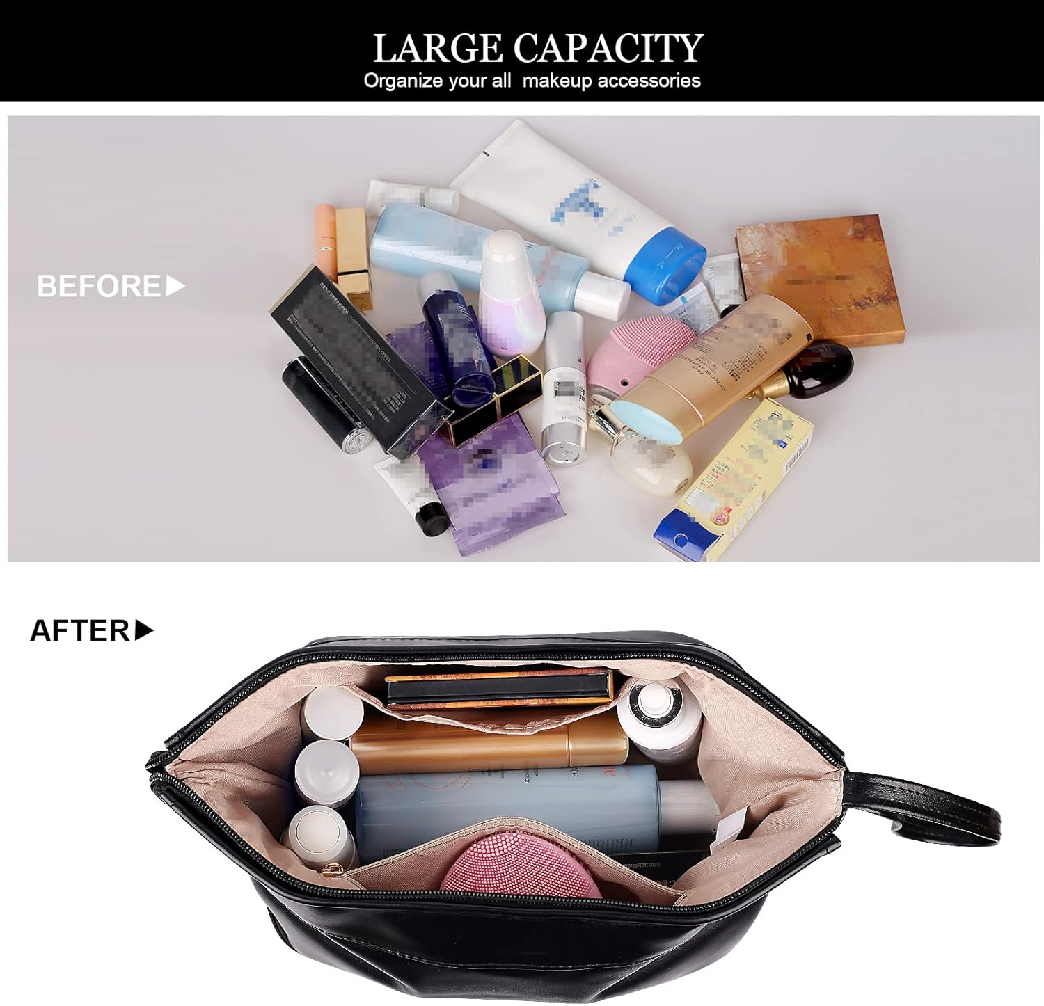- Smart Multi Functional Design:Functions as both a cosmetic organizer and toiletry bag. Ideal for daily use, vacations, or business trips - keeps makeup, brushes, and skincare products neatly separated