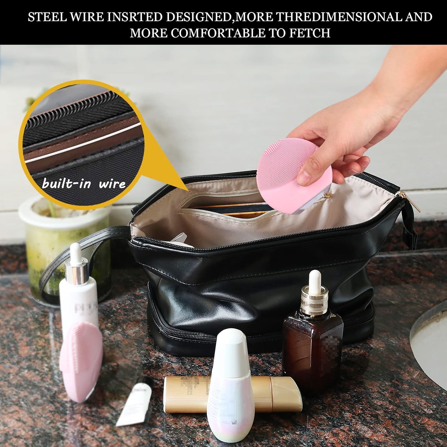 - Premium PU Construction:Made of high-quality waterproof PU that's soft, lightweight yet durable. Resists water splashes and wipes clean easily - perfect for bathroom or travel use