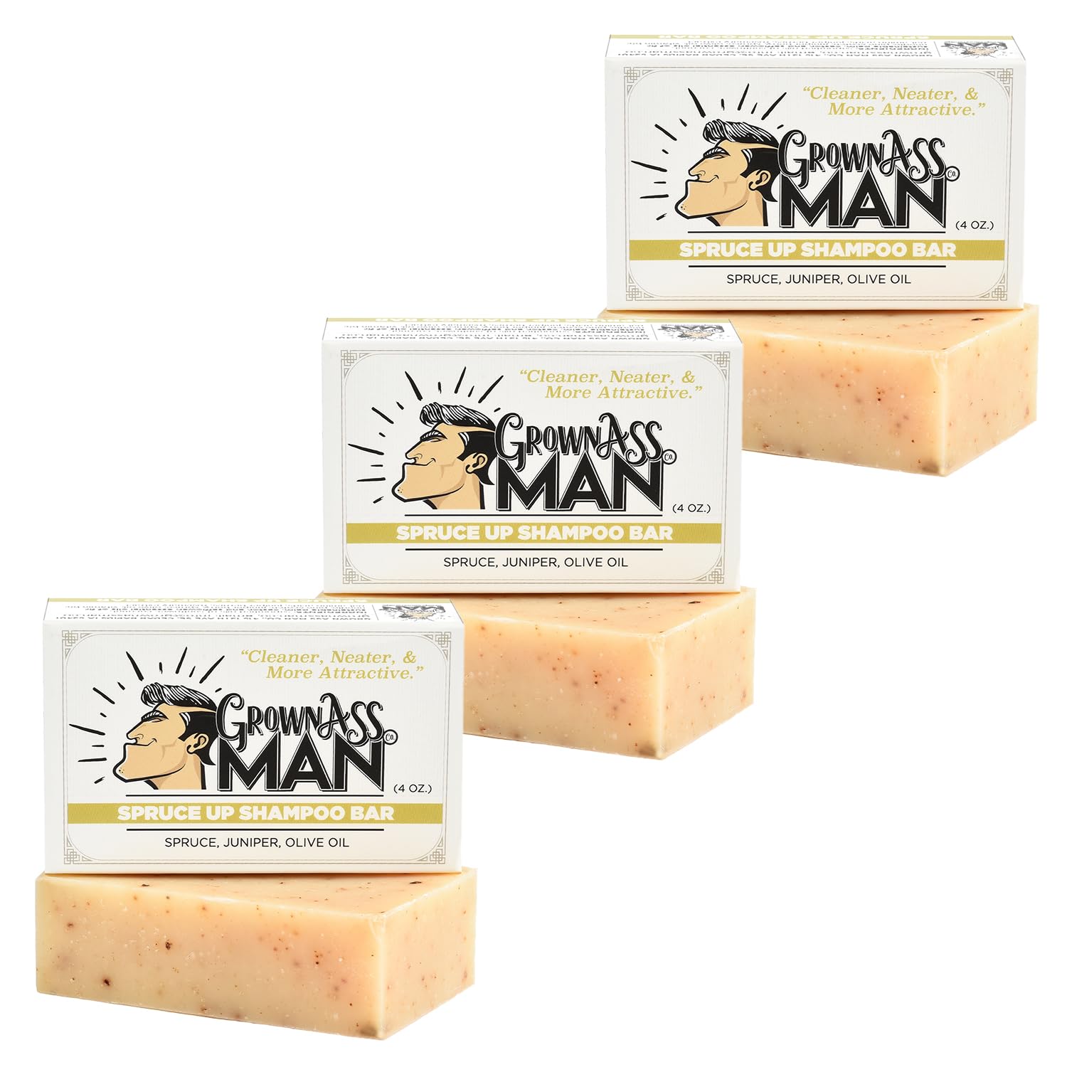Solid Shampoo Bar Rich Lather 3 in 1: Hair, Beard & Body Wash - Plastic Free & Eco-Friendly, Natural & Organic for All Hair Types, 4oz Bar (Spruce Up, 3-Pack)