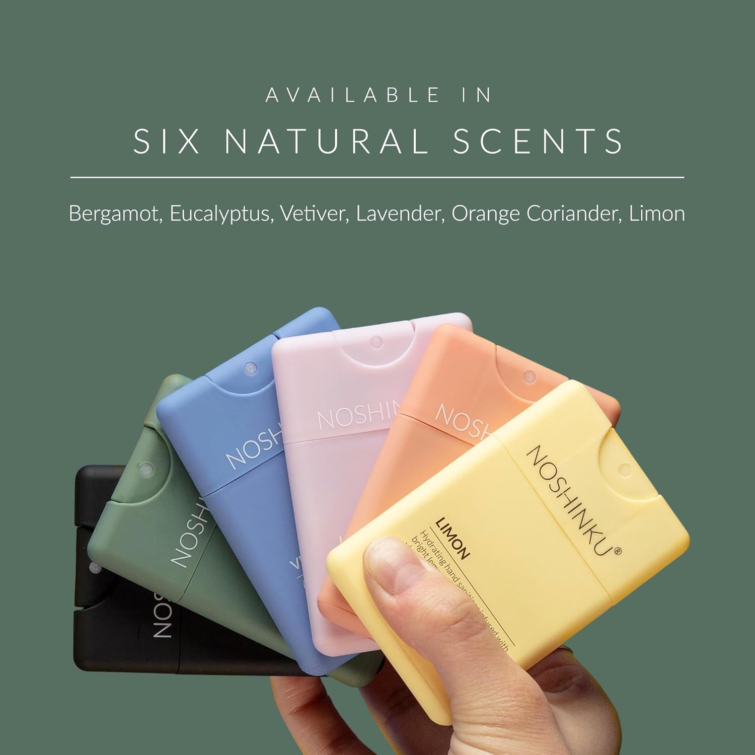 Noshinku - Refillable Hand Sanitizer Eucalyptus 3-Pack, Travel Size Spray with Hydrating Botanical Oils, Natural Ingredients, All Natural Fragrances, Sugarcane Derived Alcohol, No Parabens, No Dyes
