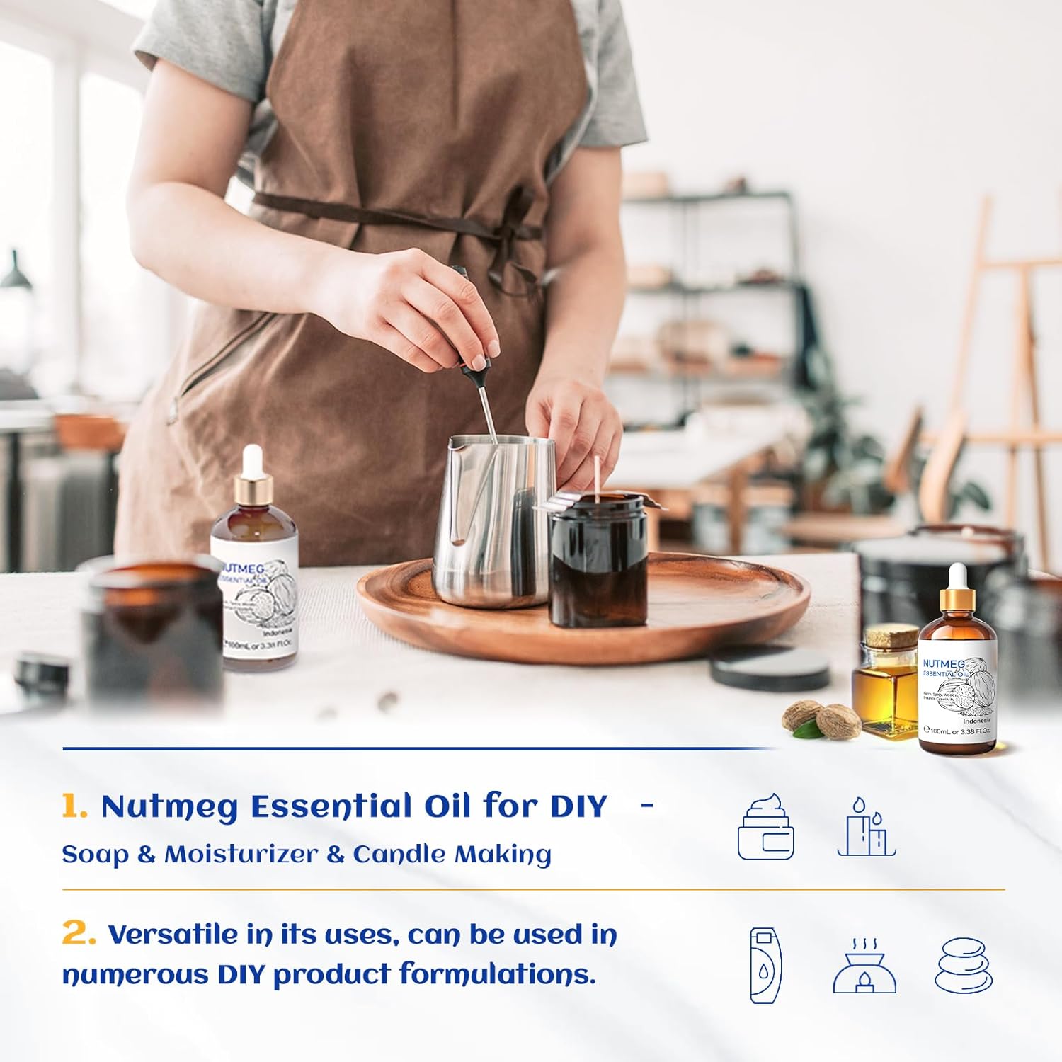 HIQILI Nutmeg Essential Oil 3.38 Fl Oz, Pure Natural Nutmeg Oil for Aromatherapy, Diffuser - 100ml
