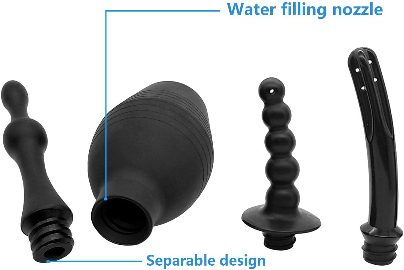 - 500ML capacity black silicone enema bulb with 3 nozzle is made of premium medical PVC, BPA FREE and used for anal.