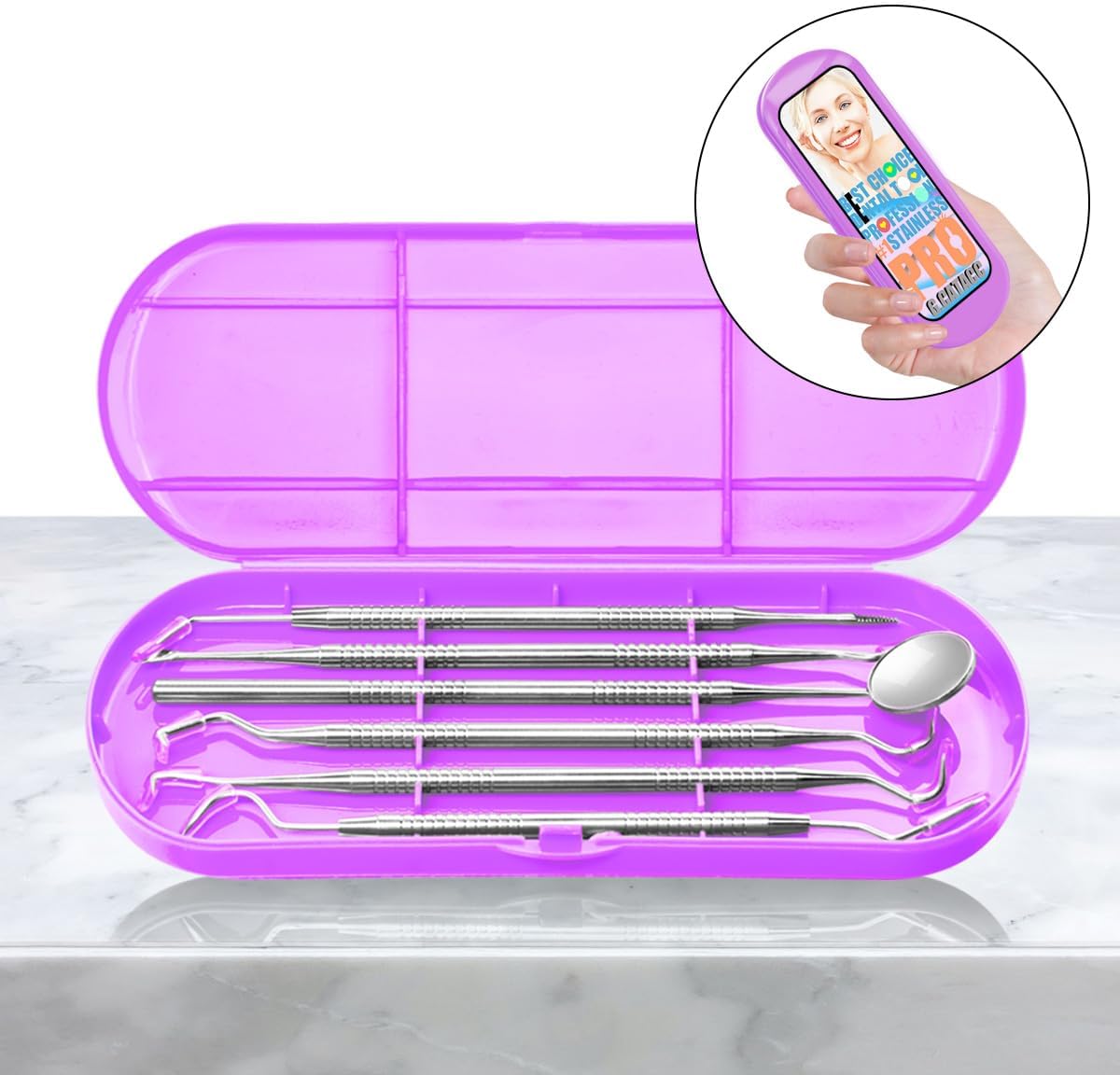 • Dental Kit Oral Care Tools: Contains different angled dental probe, scaler, metal dental pick, tooth scraper plaque tartar remover, anti-fog mirror for complete cleaning, promote fresh breath and healthy gums