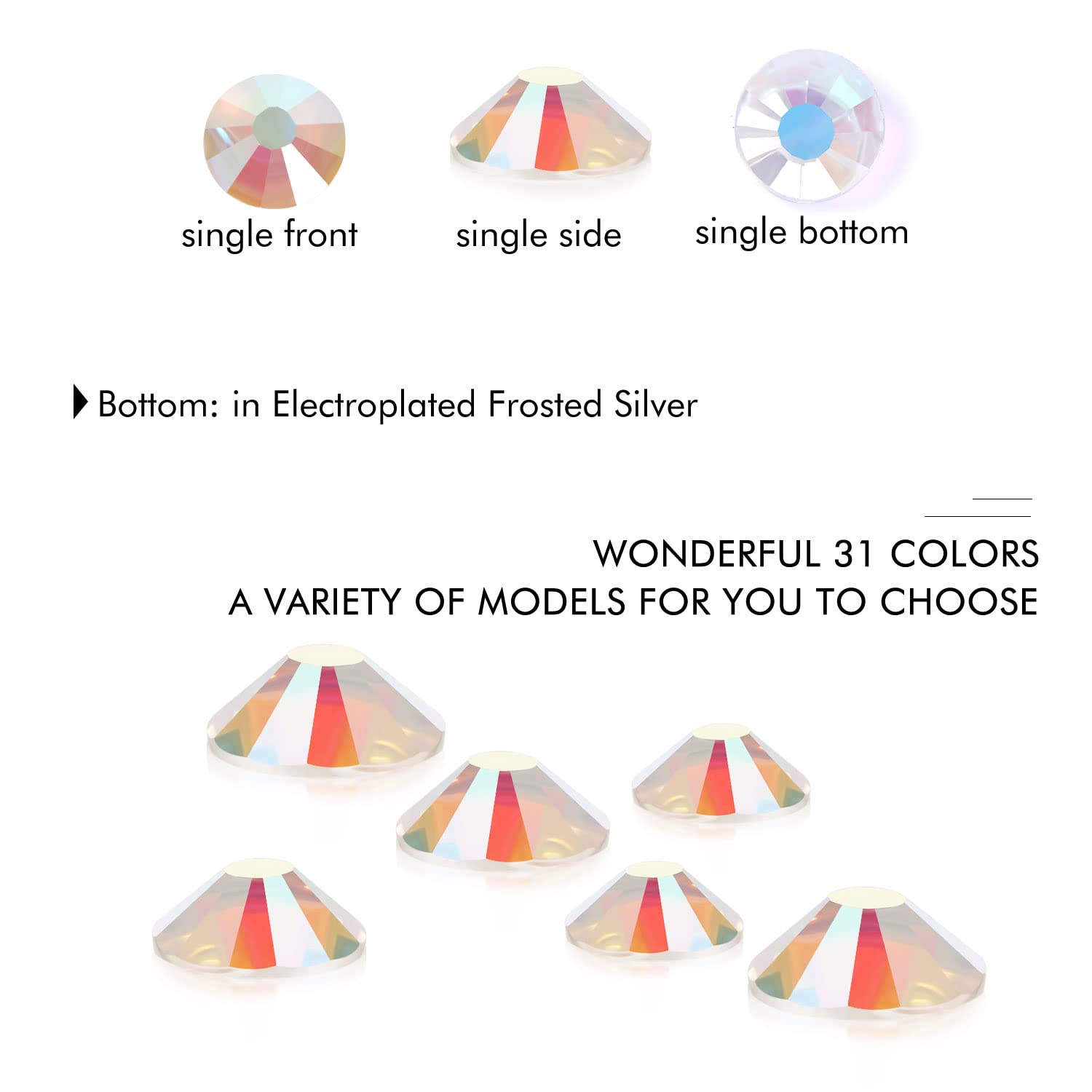 - Different Sizes Available:These rhinestones for crafts come in a wide range of sizes (1.6mm, 2mm, 2.4mm, 2.8mm, 3mm, 4mm, 4.8mm) to suit your different needs