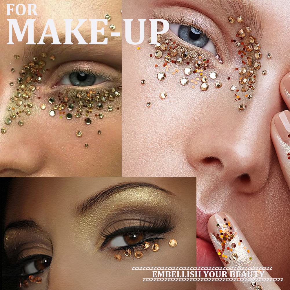 - ❤WHAT YOU WILL RECEIVE -- 1 Box of 6 Sizes Flatback Round Champagne Rhinestones; 1 Pc of Rhinestone Pickup Pencil; And 1 Pc of Tweezer for Picking up Beads. This Rhinestone Set Is Good for Both Professional Nail Tech Salons and Starters For Nail Art Or Decorations.