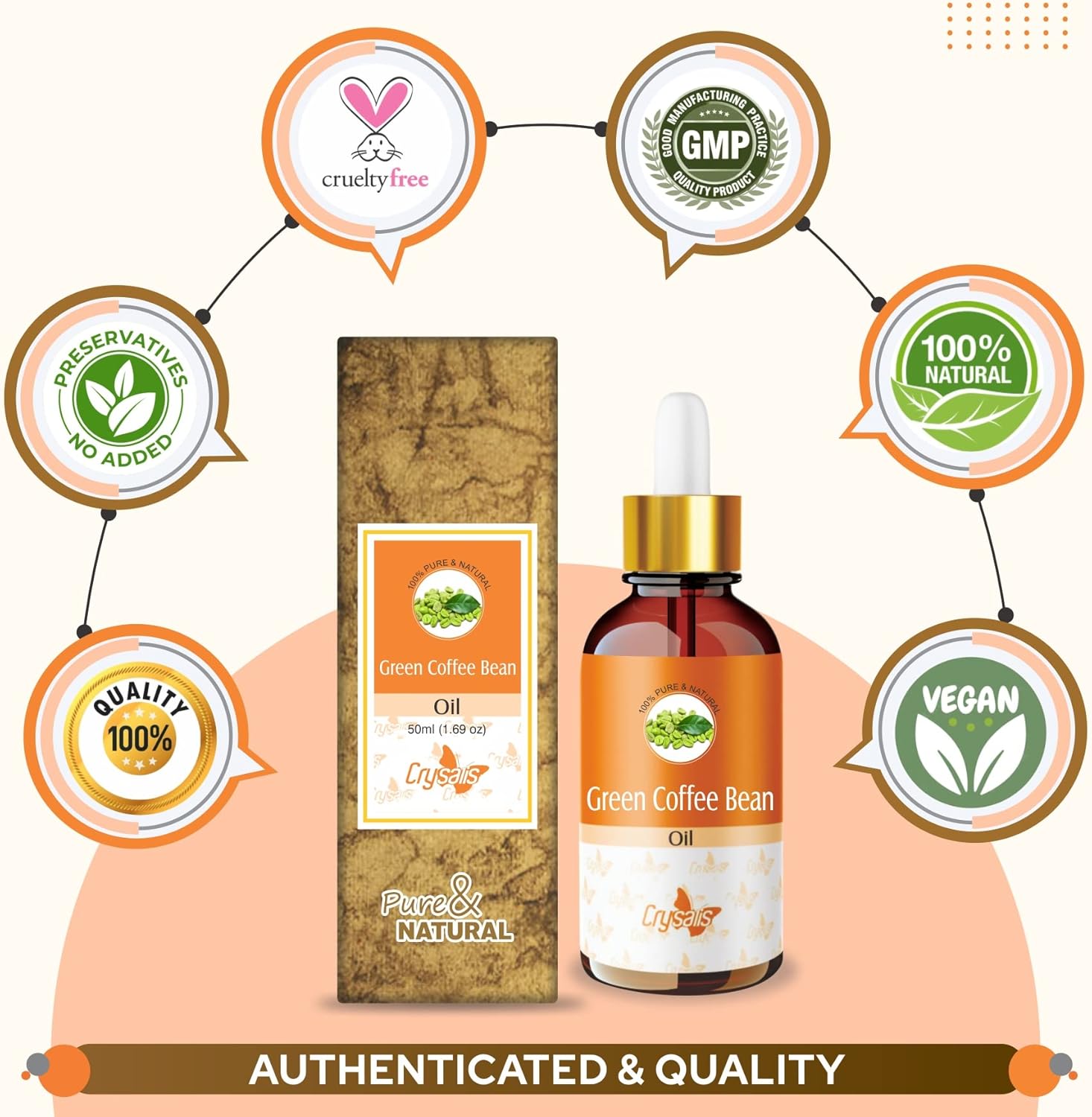 - ✔EXTRACTION METHOD: Green Coffee Bean oil is extracted from green coffee beans of coffea arabica by the cold pressed method.