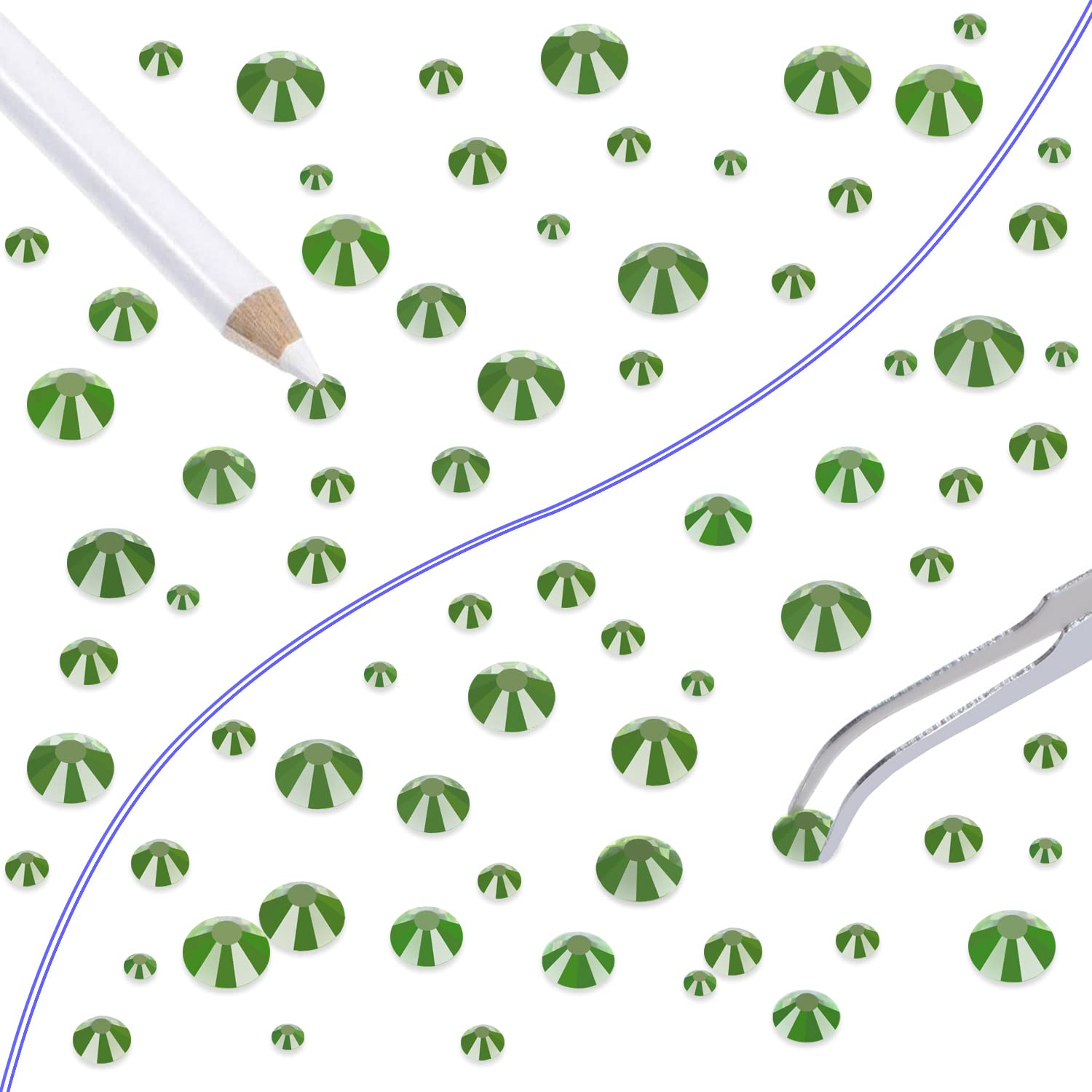 LPBeads 6000 Pieces Light Green Non Hotfix Rhinestones 6 Sizes Round Crystal Glass Flat Back Rhinestones with Tweezers and Picking Pen for Nail Art Crafts Bags DIY