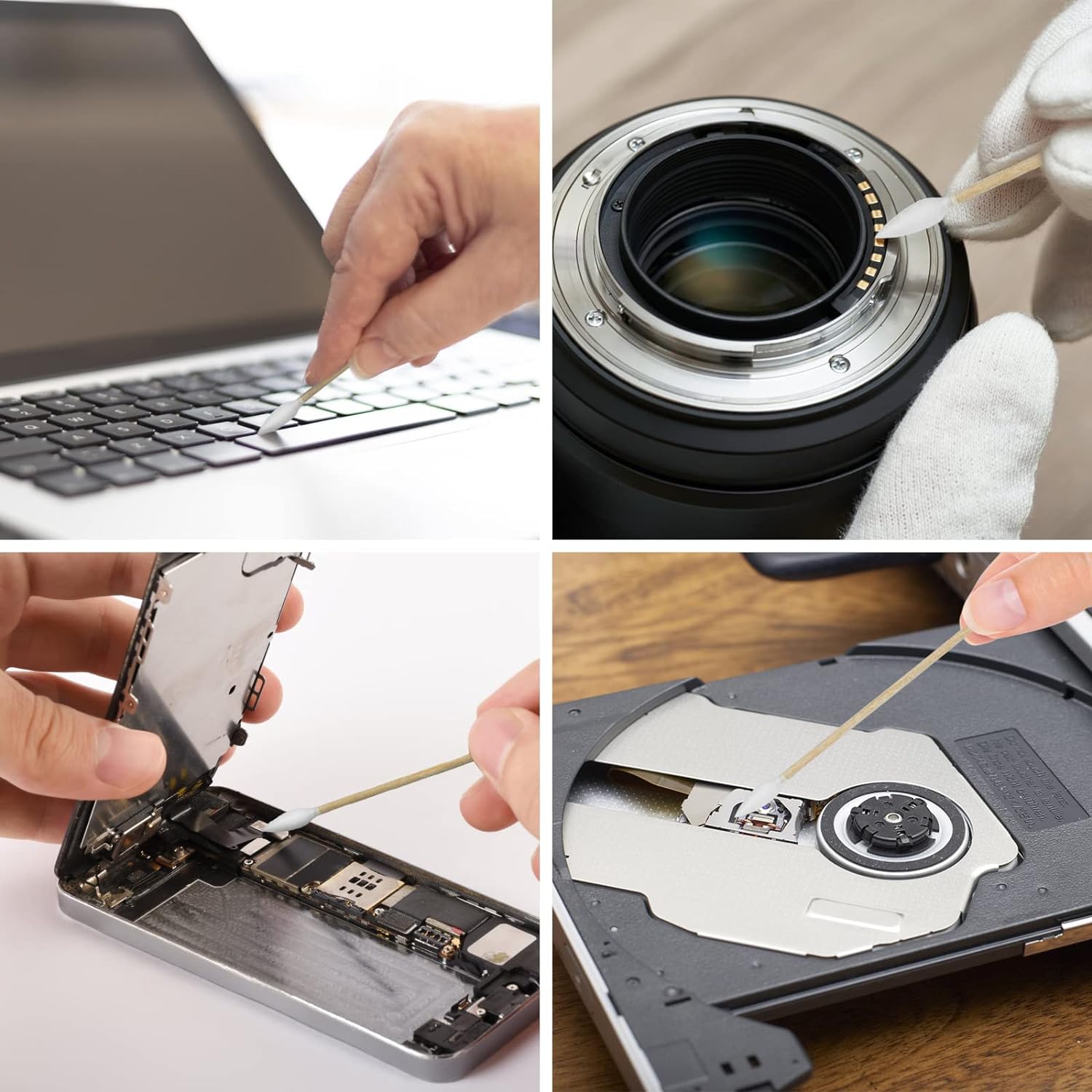 - Pointed Tip Extra Long Cotton Swab: compared with round tip cotton swabs, pointy tips are more suitable for precision cleaning & application. 6 inch handle long reach to hard to reach area, small conners, narrow gap and tight space, great for gun barrel cleaning, household & electronics dirt and dust cleaning, painting, arts & crafts, glue application.