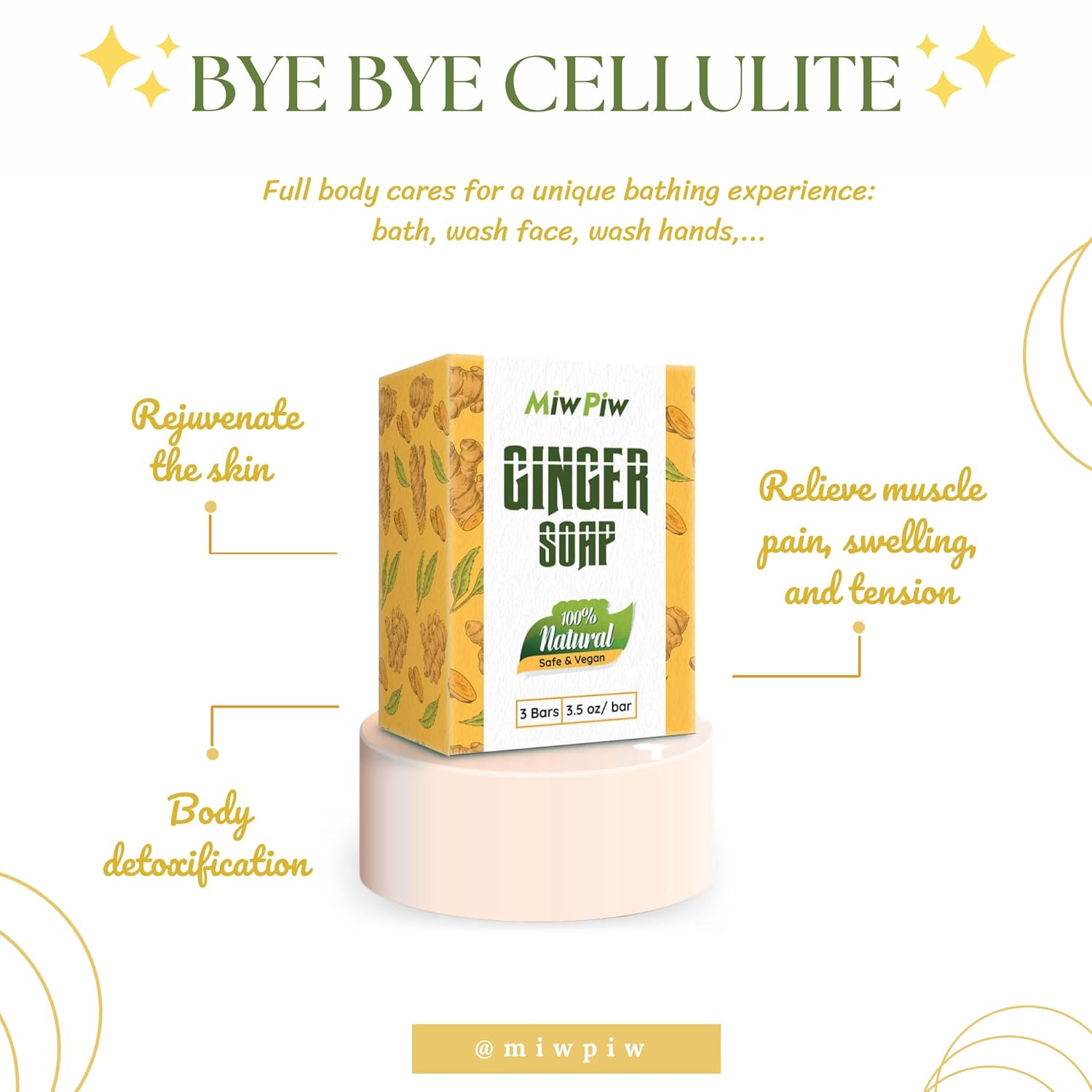 Ginger Soap Lymphatic Drainage Pack 3 - Anti-Cellulite Skin Tightening - Natural Ingredients Detox Soaps for Deep Clean Shower, Detoxification, Rejuvenating