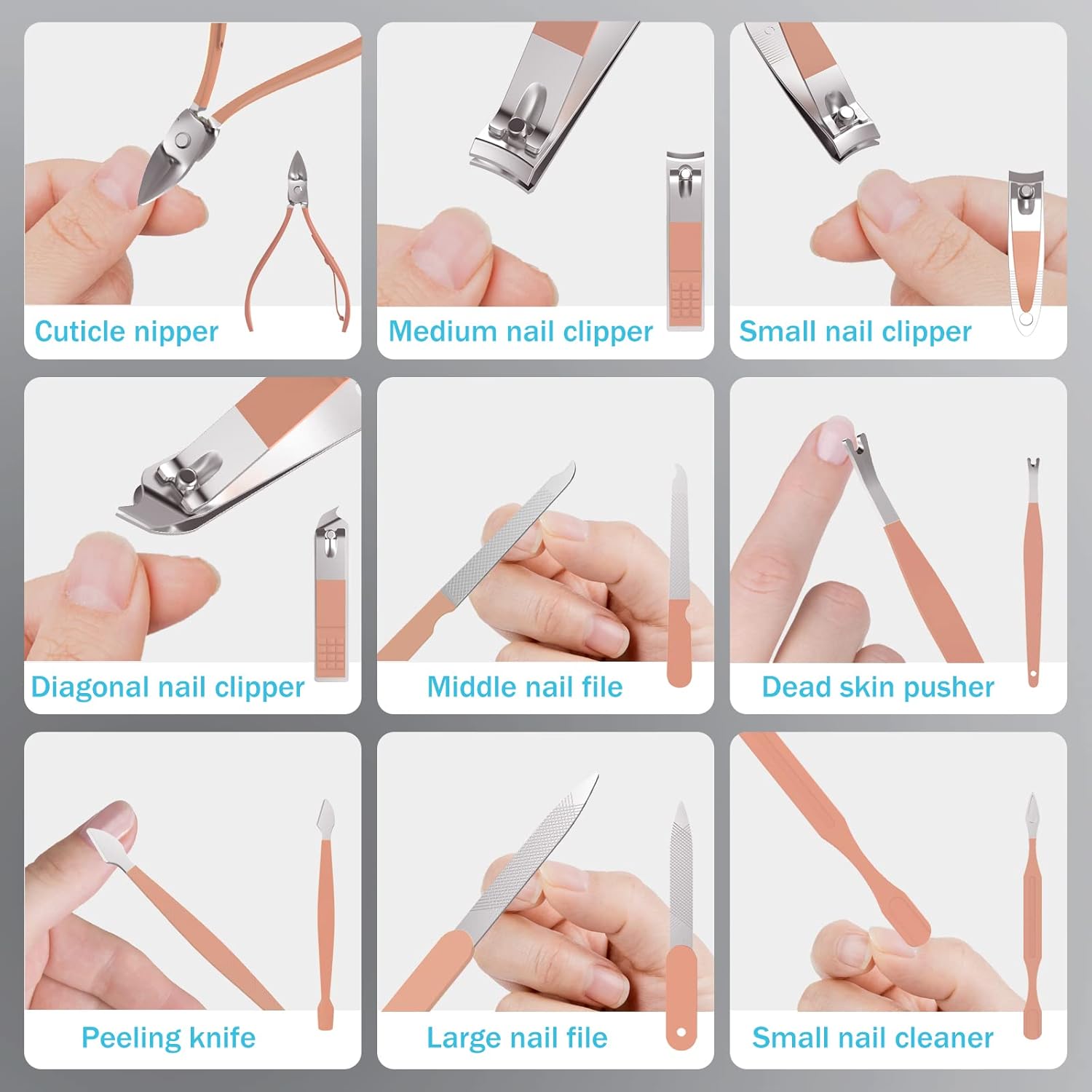 - ✅Guarantee : These manicure/pedicure sets are made of high strength strainless steel. Pretty, sturdy and built to last. Sharpened blades cut thick nails smoothly and easily.