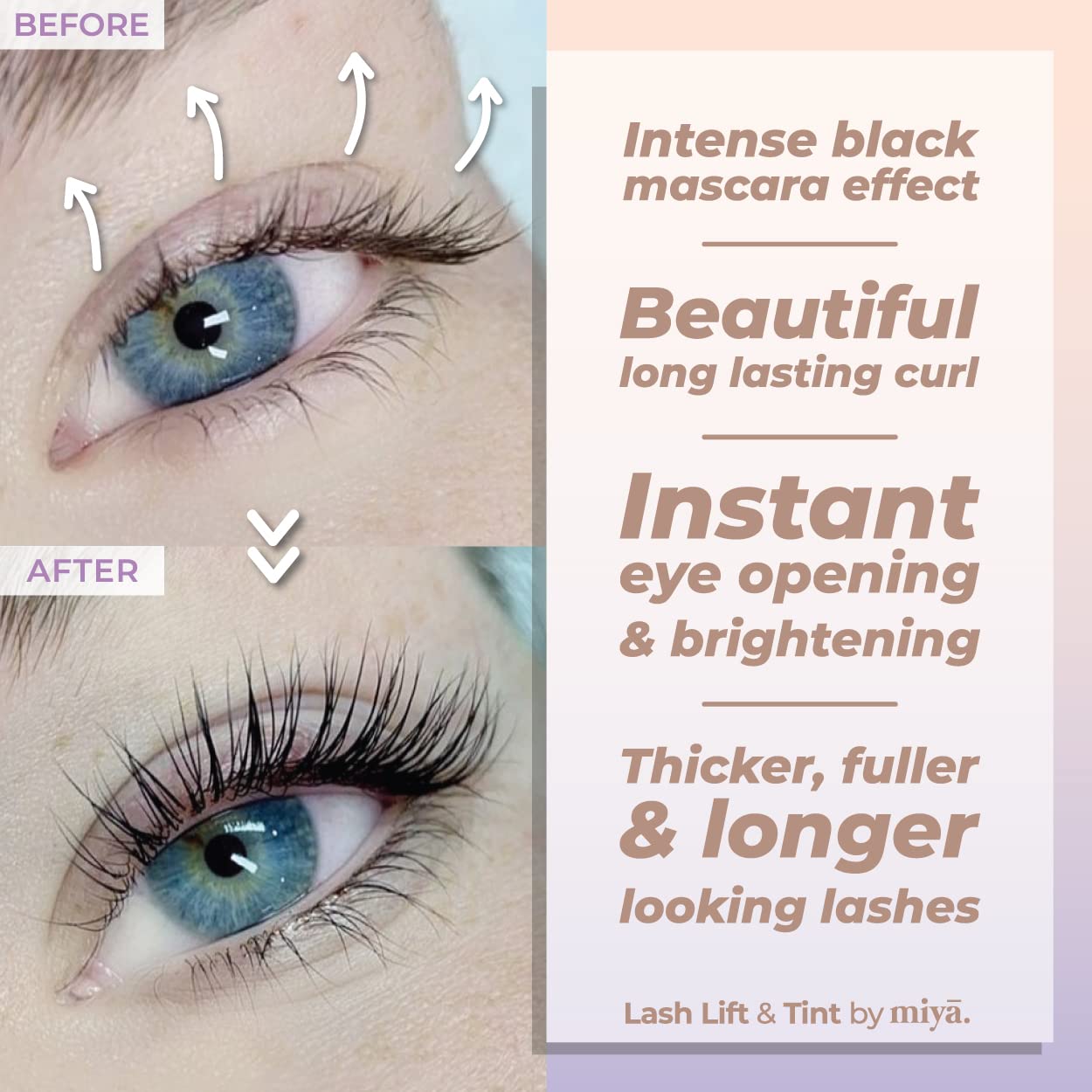 - 🦋 MAKE YOUR EYES SPARKLE WITH MIYA EYELASH PERM KIT (AKA LVL, Lash perming, Curling) – Lifting and curling your natural eyelashes will enhance their definition and make them appear darker, thicker and fuller. Say goodbye to the traditional lash curler, mascara and the expensive eyelash extensions. The Miya Lash lift kit is a semi-permanent, gentle solution to give your lashes the oomph they need! Your beautiful lifted lashes will stay with you for up to 6 weeks and maintenance free!