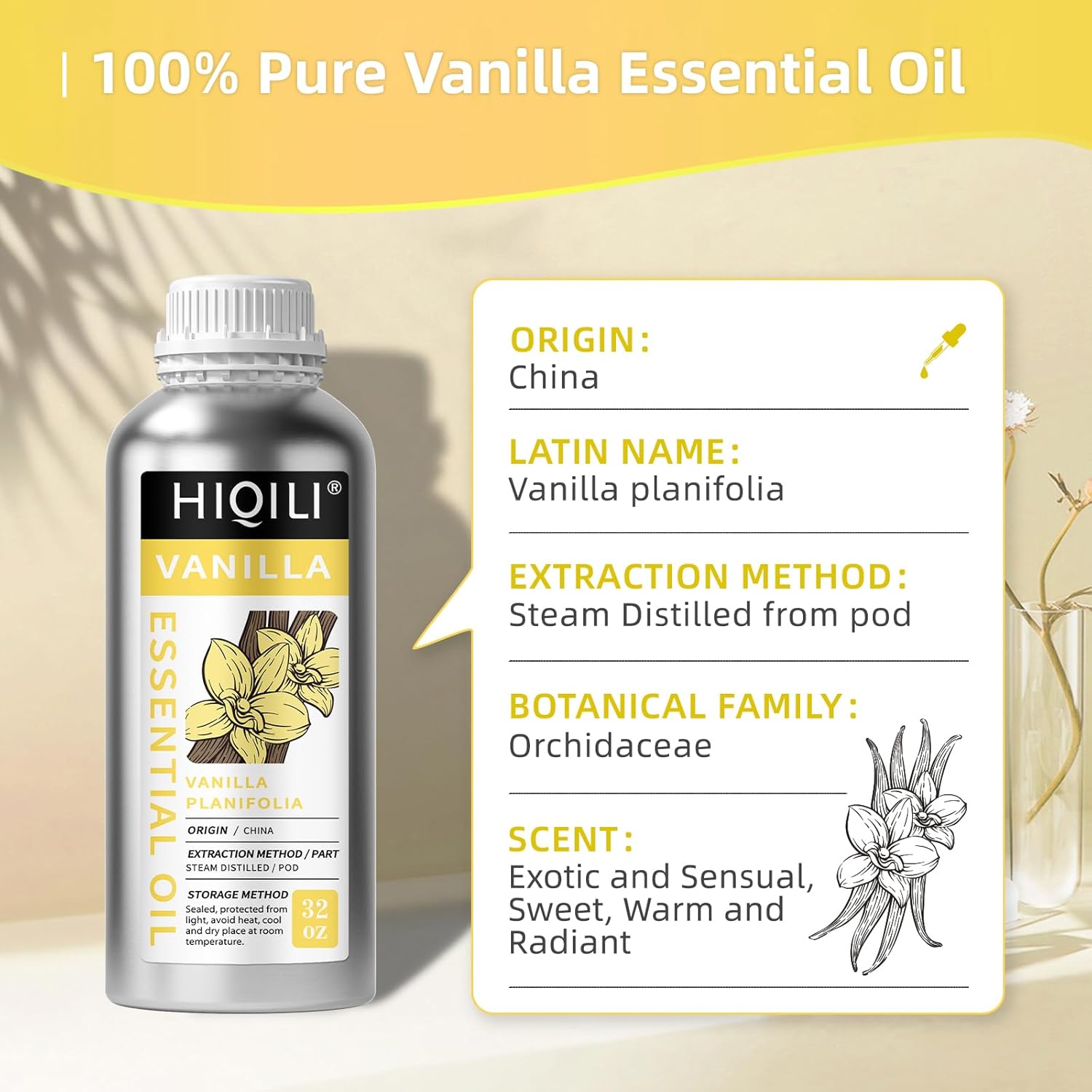 HIQILI 32 Ounces Vanilla Essential Oil, Strong Fragrance for Body Lotion, Candle Making, Soap, Aromatherapy-32 Fl Oz