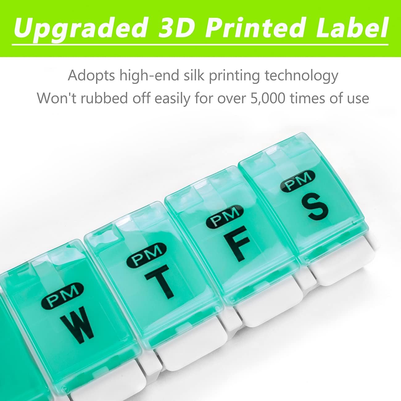 - Easy To Open: Our Extra Large 2 times a day pill box comes with push button design, press gently with your thumb on the front of this large 7 day pill organizer and the lid pops open, arthritis friendly, making it incredibly easy for you to open even with a single hand!