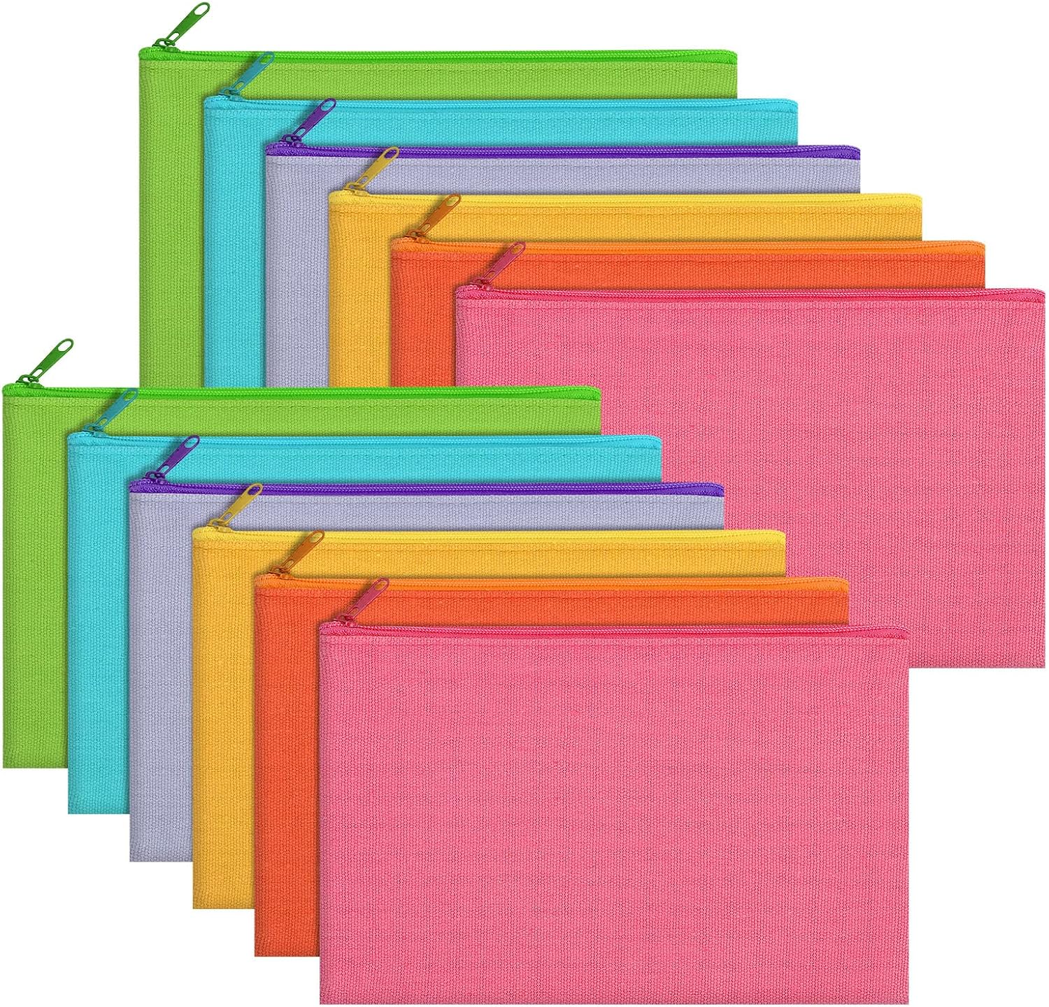 12 Pieces Cotton Canvas Makeup Bag, Multipurpose Cosmetic Bag with Zipper Travel Toiletry Pouch, Blank DIY Craft Bag (Multicolored B, M)