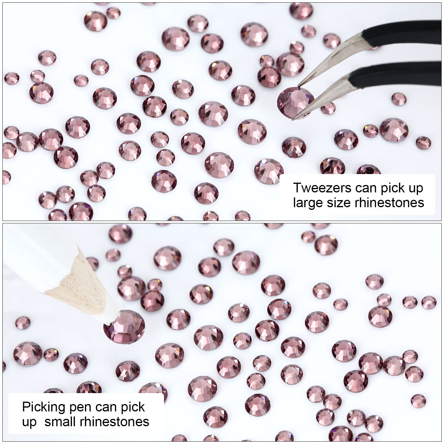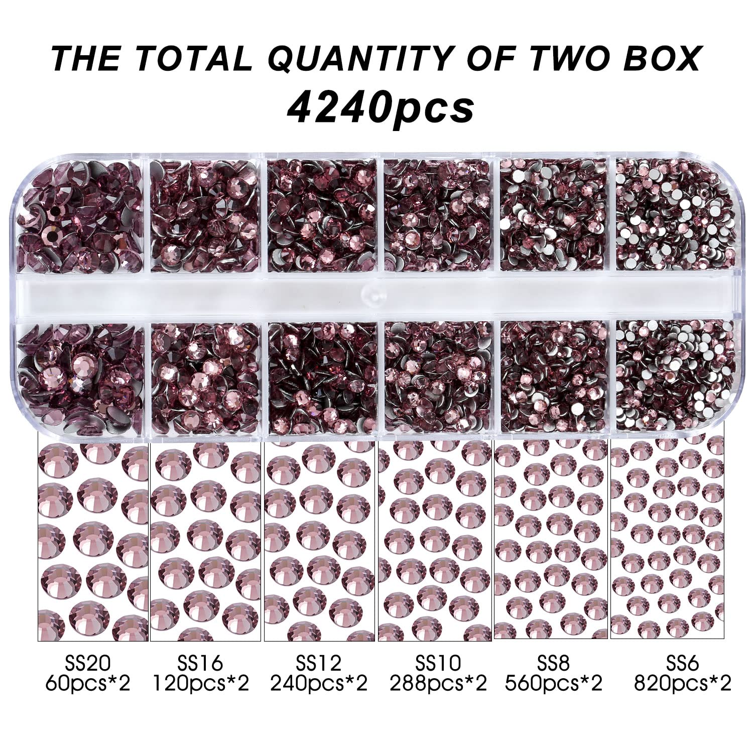 - 💎Product Packaging: Box Packaging SS6 2MM - 1680 Pcs, SS8 2.4MM - 1120 Pcs, SS10 2.8MM - 600 Pcs, SS12 3MM - 480 Pcs, SS16 4MM - 240 Pcs, SS20 4.8MM - 120 Pcs, 1 pcs Tweezers and 1 pcs Picking Pen.