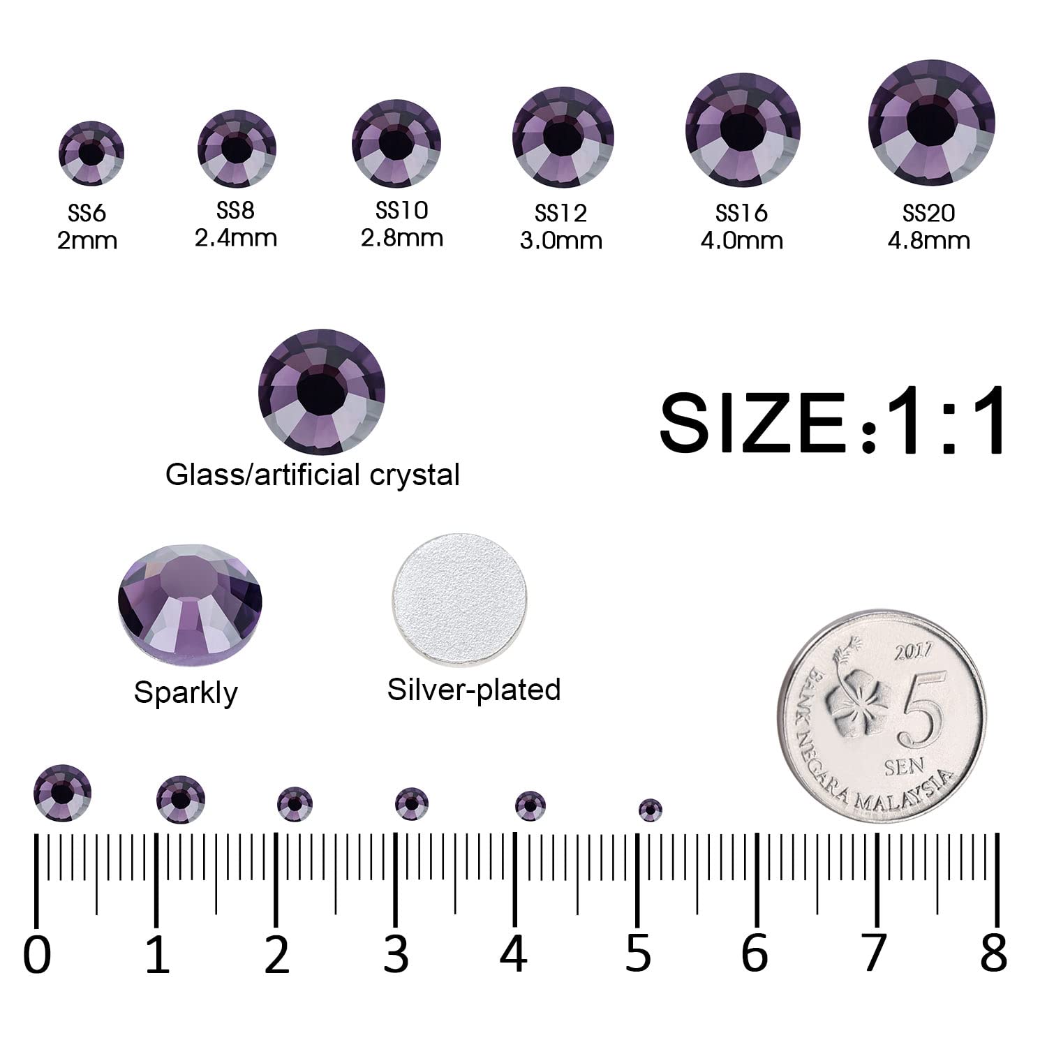 - 💎Material: Glass/Artificial Crystal. Surface High-precision cross-section, multi-sided cutting, high brightness,high Sparkly. Flatback, Round,Silver-plated back, not easy to be allergic. Note that the color changes with the angle and light. color surface plating, not easy to fade.