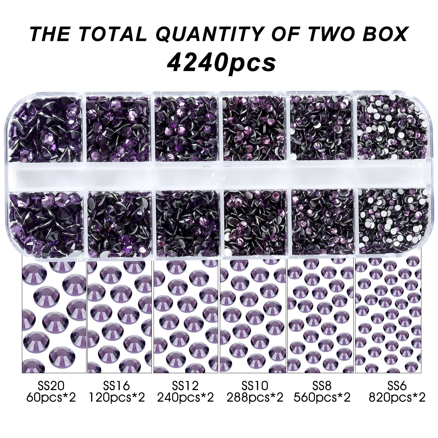 - 💎Product Packaging: Box Packaging SS6 2MM - 1680 Pcs, SS8 2.4MM - 1120 Pcs, SS10 2.8MM - 600 Pcs, SS12 3MM - 480 Pcs, SS16 4MM - 240 Pcs, SS20 4.8MM - 120 Pcs, 1 pcs Tweezers and 1 pcs Picking Pen.