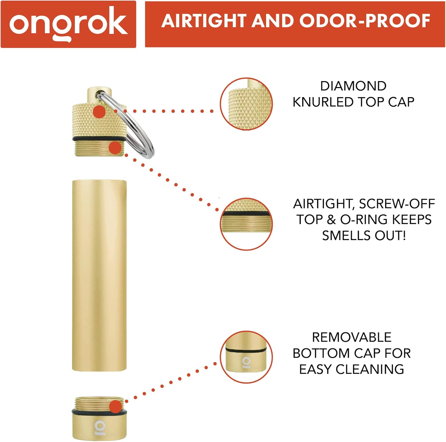 ONGROK Premium Storage Tube, Keychain, Pocket-Sized, Airtight, Aluminum Metal Holder and Case (Gold)