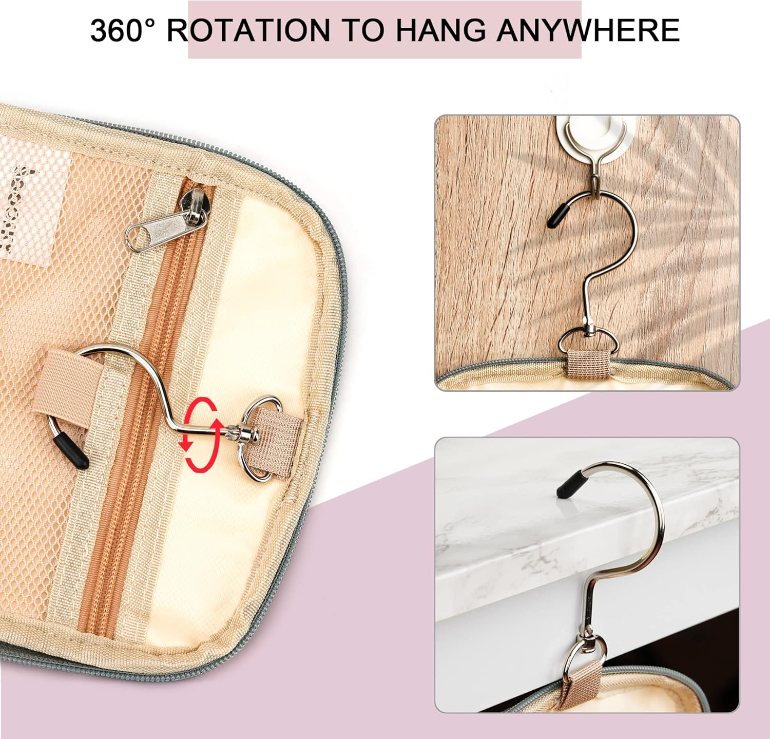 - CONSIDERABLE DESIGN - The elastic band and elastic mesh bag in the main compartment and two side compartments can keep the bottle fixed and upright. It has two waterproof compartments specially used for storing wet items. You can put your wet towel, toothbrush, shaving kit, and leaky cosmetics in it. The 360 degrees rotate metal hook gives you a variety of hanging options.