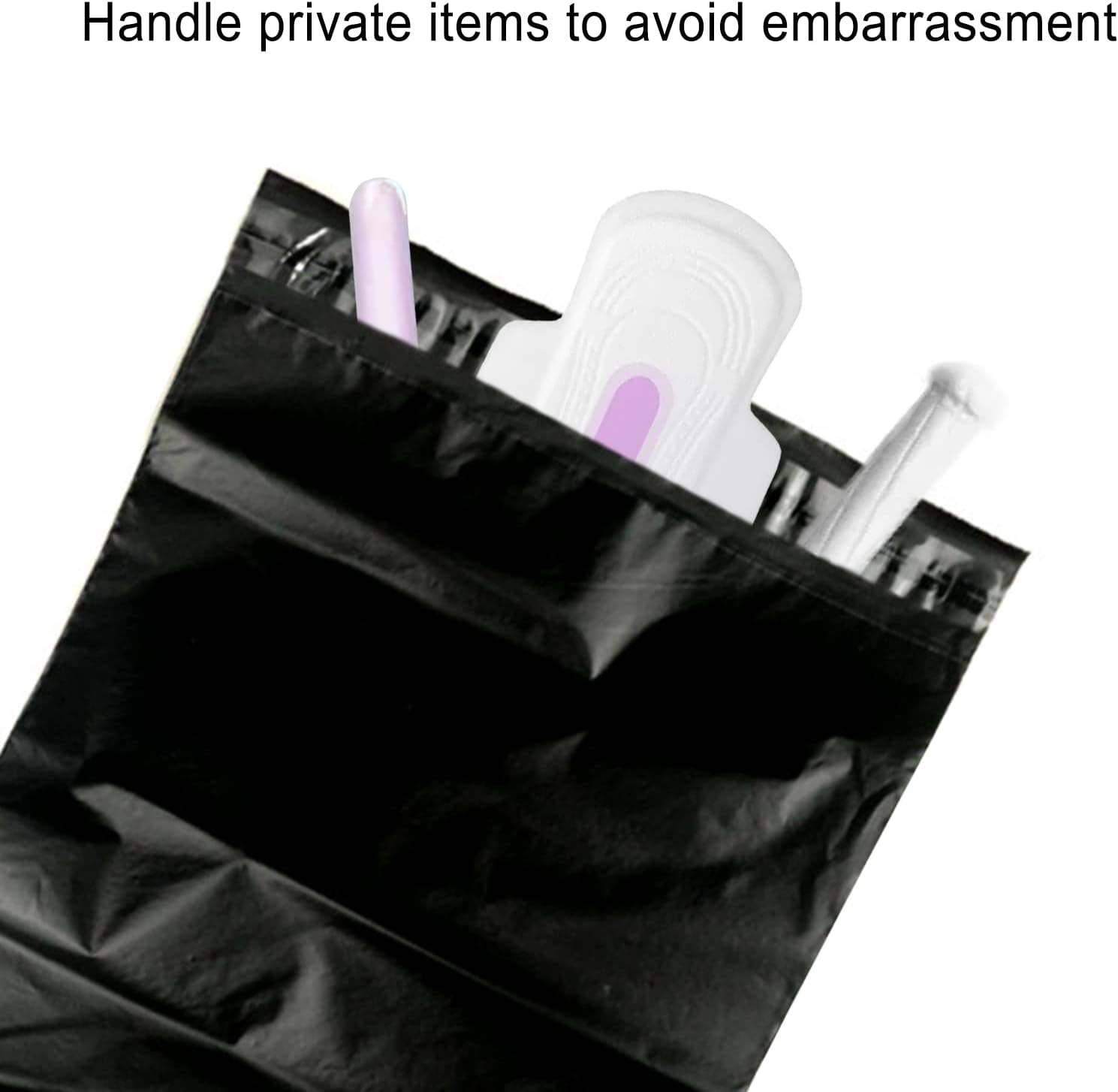- 🚮HIDDEN PERSONAL ITEMS -- Our feminine disposable bags are specially designed for women. They are great for concealing your hygiene or incontinence pads, whether at home or outdoors. Disposal of the sanitizer bag becomes a problem when going out or being invited by a friend. Our feminine hygiene bags for women can help with this embarrassing problem.
