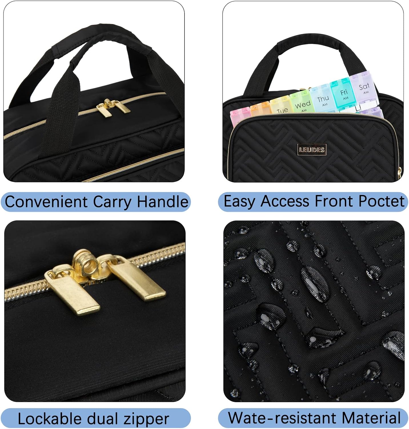 Leudes Travel Pill Bottle Organizer,Medicine Organizer and Storage,Home Medication Bag, Cases,Carrier for Pills,Vitamin,Fish Oil,Supplements for Women and Men (Medium, Black)