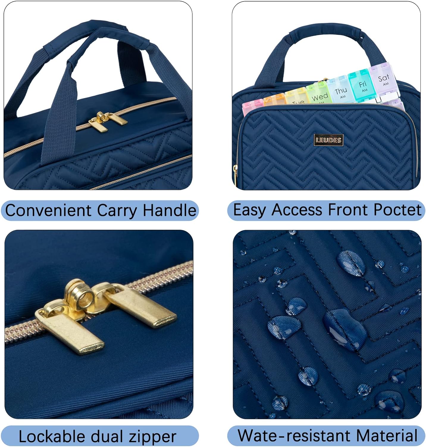 Leudes Travel Pill Bottle Organizer,Medicine Organizer and Storage,Home Medication Bag, Cases,Carrier for Pills,Vitamin,Fish Oil,Supplements for Women and Men (Medium, Blue)