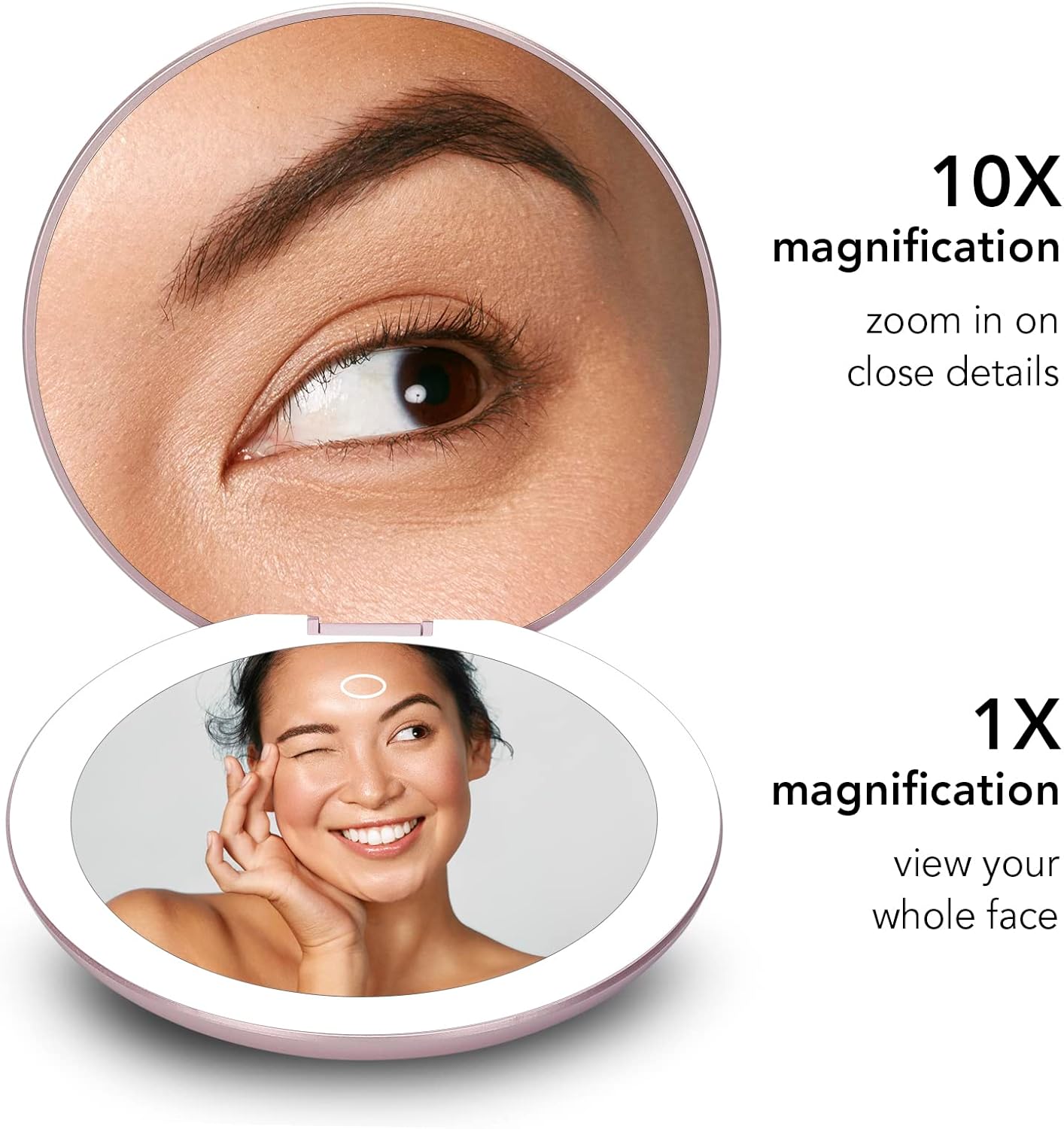 - Fancii Led Lighted Travel Makeup Mirror, Rechargeable With 10x/1x Magnifying & 3 Light Settings - Compact, Portable, Large 5” Wide Hand Mirror for Handbag and Purses (Rose Gold)