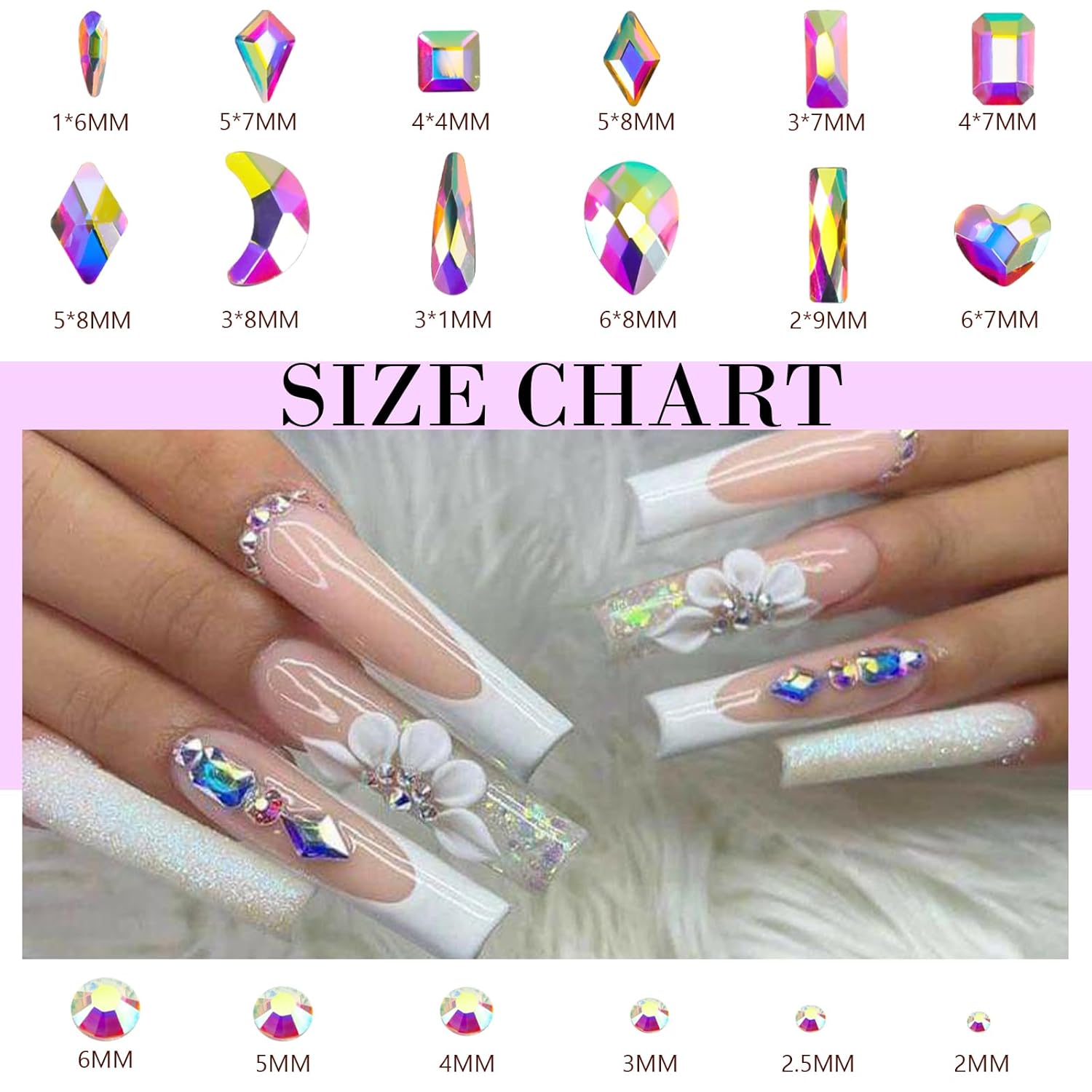 - ❤️CREATE YOUR WONDERFUL DIY DESIGNS -- 12 different stylish shape nail jewels and 2398pcs AB clear rhinestones. Each size or shape nail art rhinestones have separate compartment, which is very useful for your classification and prevents mixing. Just enjoy you rhinestones for craft.