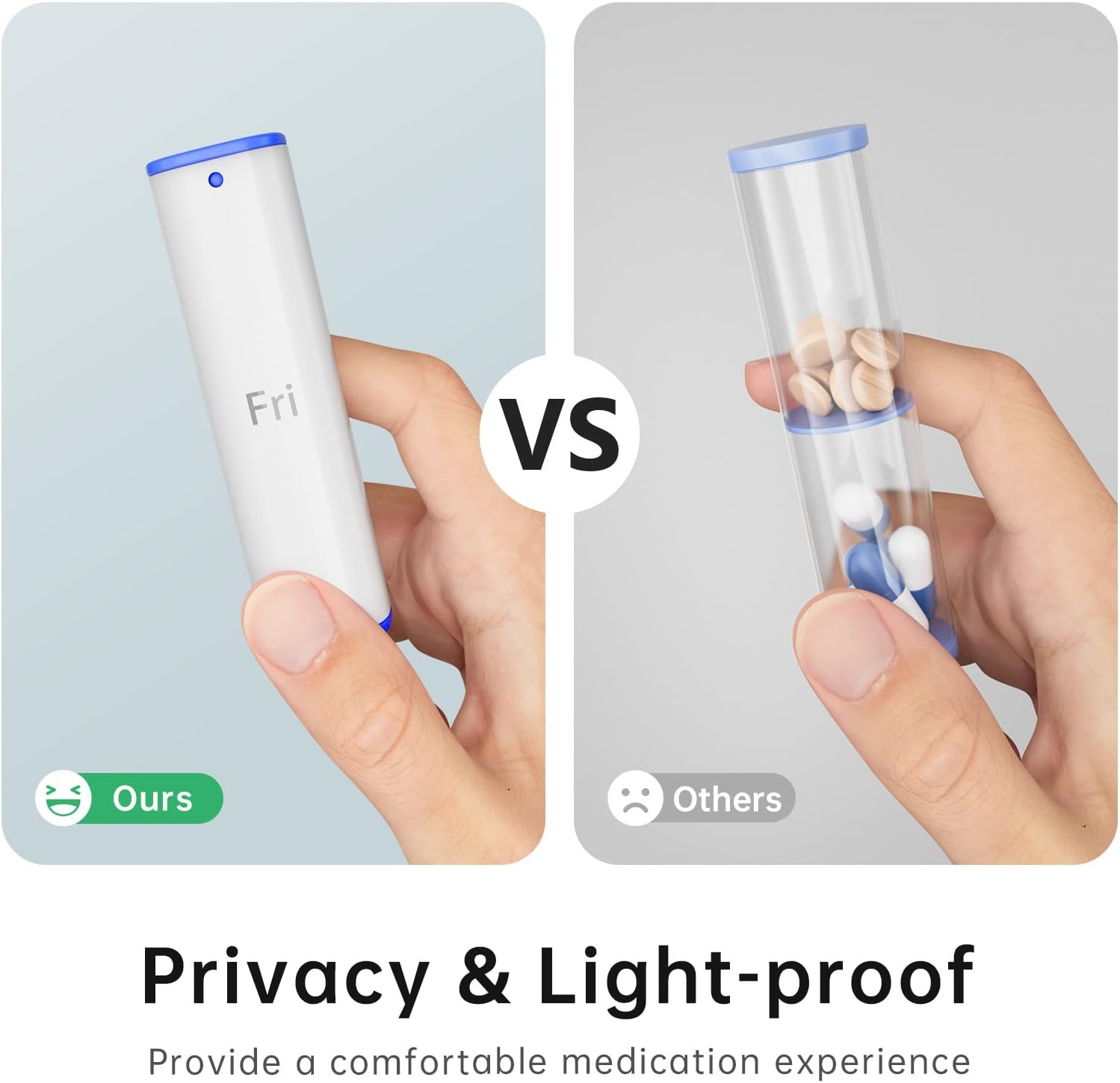 - Easy to Use & Clean: The 2 compact silicone caps on each small pill organizer providing a safe & airtight storage environment for vitamins, fish oils. Elders or people who have arthritis just need gently push to open and press to close. With this travel pill organizer, you will never forget your daily medication. The weekly pill box is made of Food-grade ABS, It is easier for daily clean than other silicone day and night pill organizers