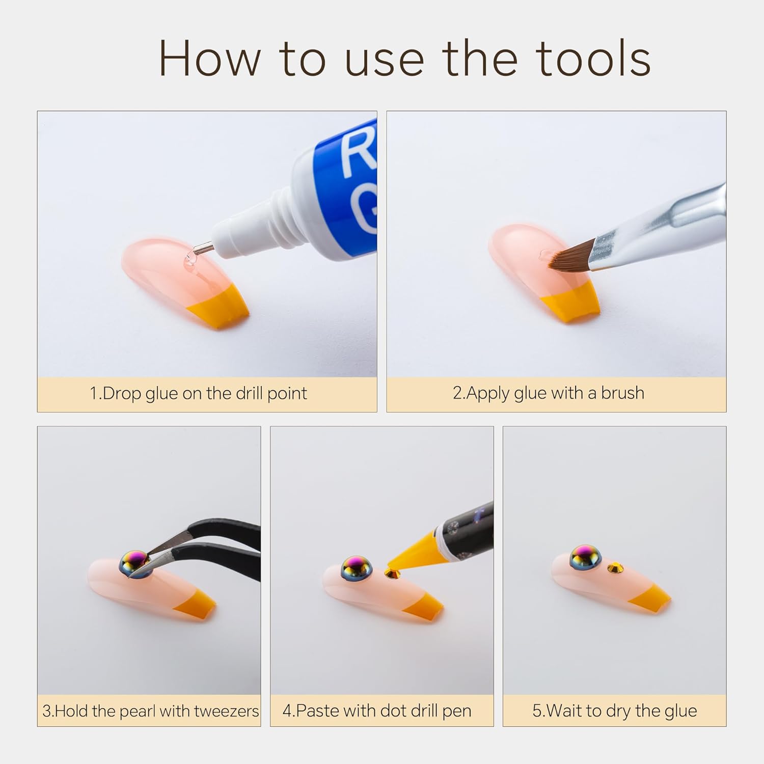 - Useful tools - These pearls and rhinestones have a flat back, which is excellent for easy placement.and you can pick up any large or small pearls and rhinestones with the crayons we bring along. And use the brush to smooth out the Gel, these tools will work very well