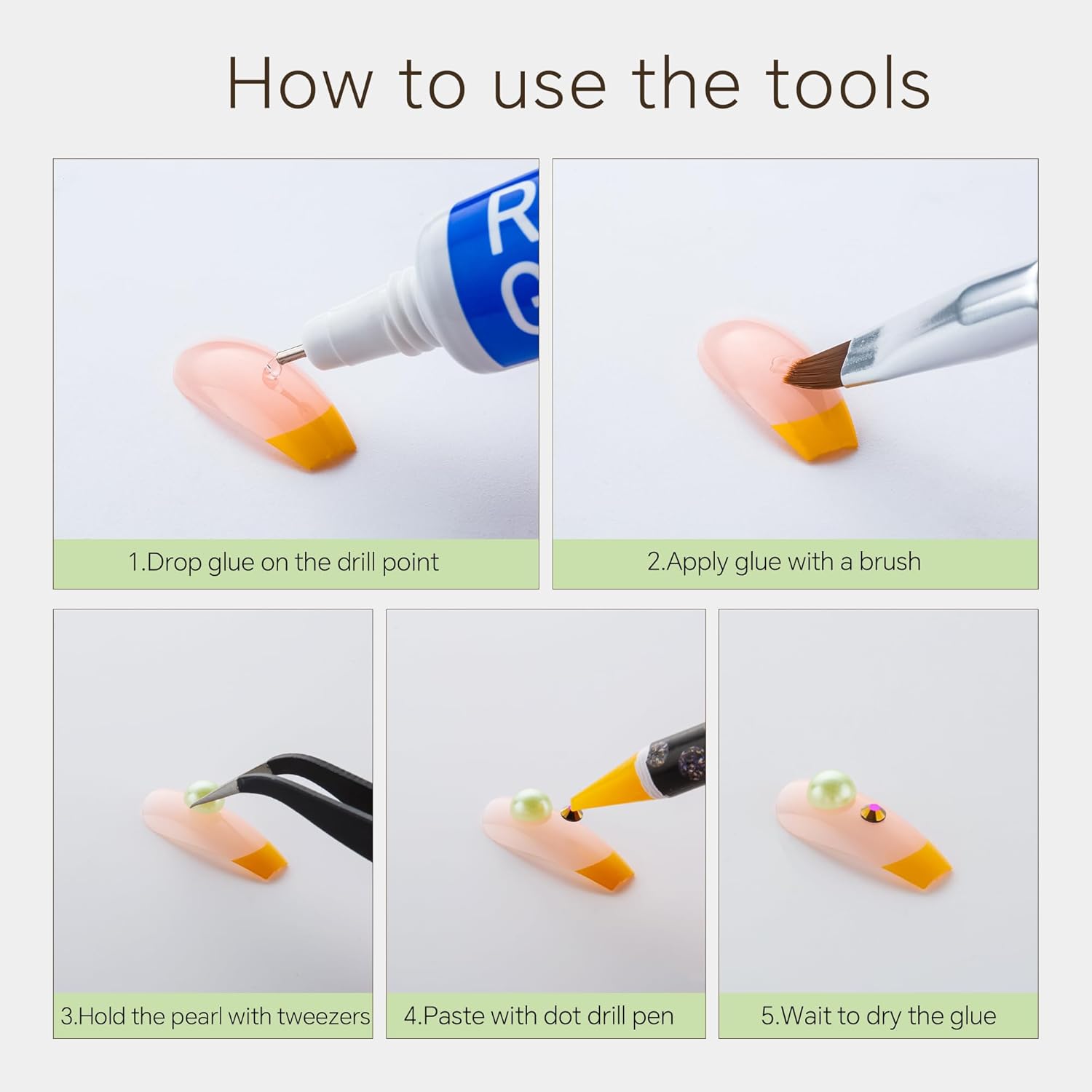 - Useful tools - These pearls and rhinestones have a flat back, which is excellent for easy placement.and you can pick up any large or small pearls and rhinestones with the crayons we bring along. And use the brush to smooth out the Gel, these tools will work very well