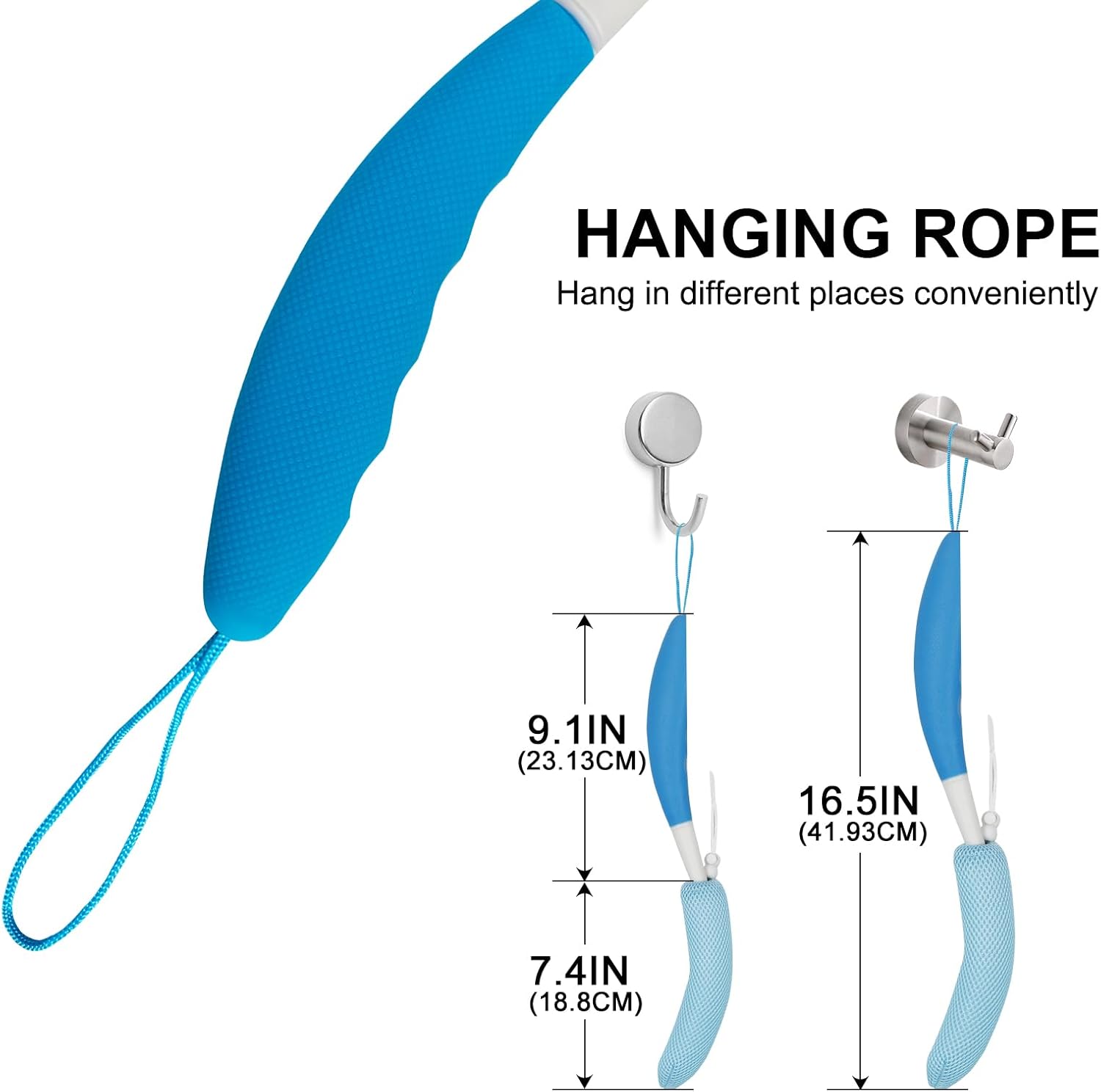 - Ergonomic Design: The long handled shower brush is ergonomically designed with a reasonable curve, which helps to clean every part of the body. Non-slip silicone handle for increased grip comfort