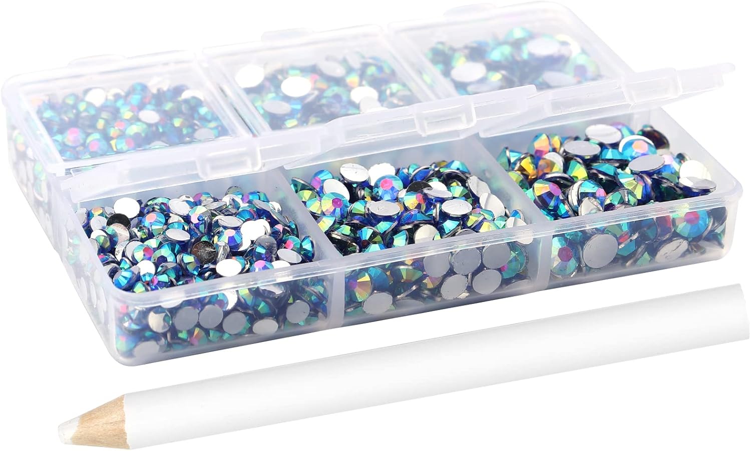 Multi Size 3mm 4mm 5mm Rhinestones Set for Nails Crafts Sapphire Non Hotfix Rhinestones Nail Gems Rhinestone AB Color&Round Flat Back Resin Rhinestone for Makeup Clothes Shoes Eye Bottles Crafts
