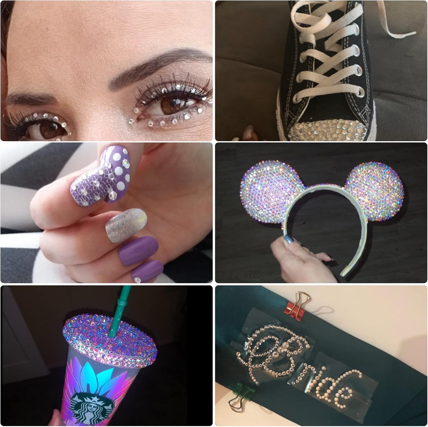 - Application: These rhinestones are great ideal for decorating many items including clothes, shoes, nail art, body art, mobile phone, bags,cups, bottle, mug, makeup, jewellery Etc. Adds sparkle and glamour to your decoration, providing different visual enjoyment to your daily life.