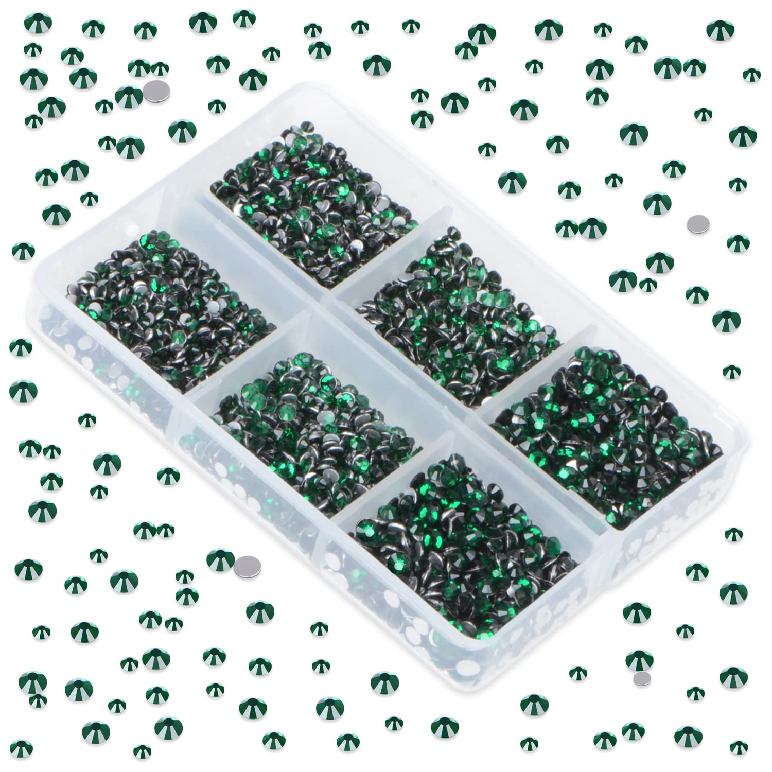 LPBeads 6000 Pieces Emerald Non Hotfix Rhinestones 6 Sizes Round Crystal Glass Flat Back Rhinestones with Tweezers and Picking Pen for Nail Art Crafts Clothes Bags DIY
