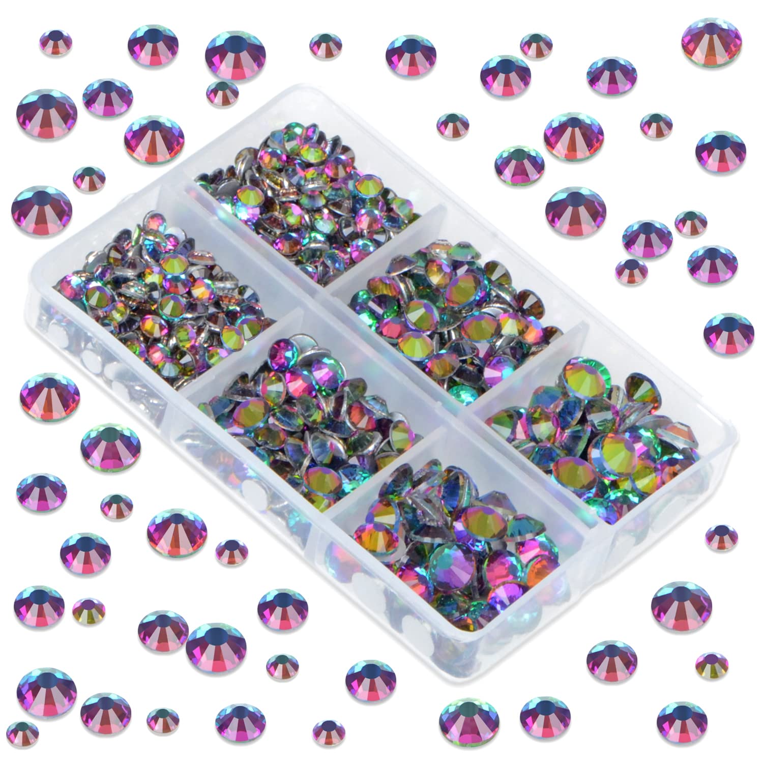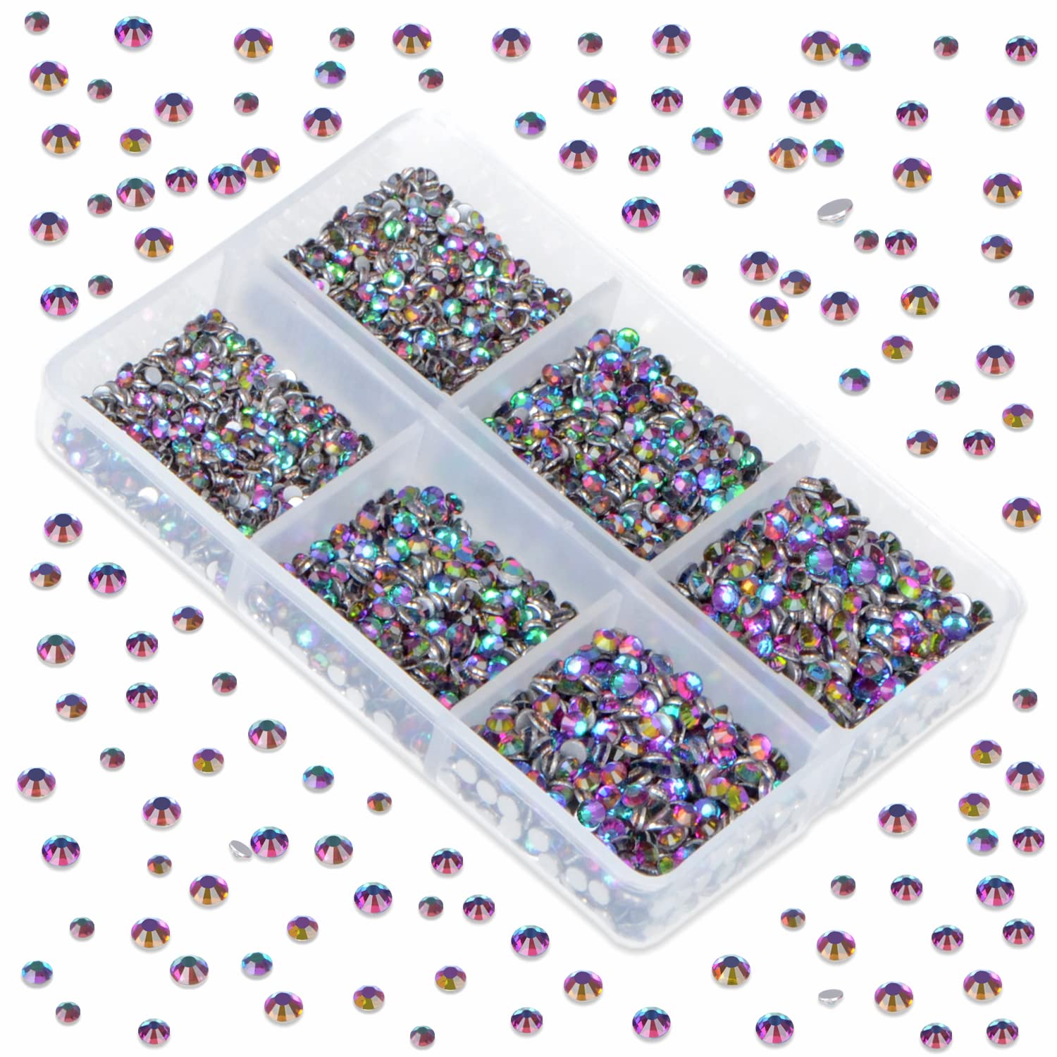 LPBeads 6000 Pieces Green Volcano Non Hotfix Rhinestones 6 Sizes Round Crystal Glass Flat Back Rhinestones with Tweezers and Picking Pen for Nail Art Crafts Clothes Bags DIY