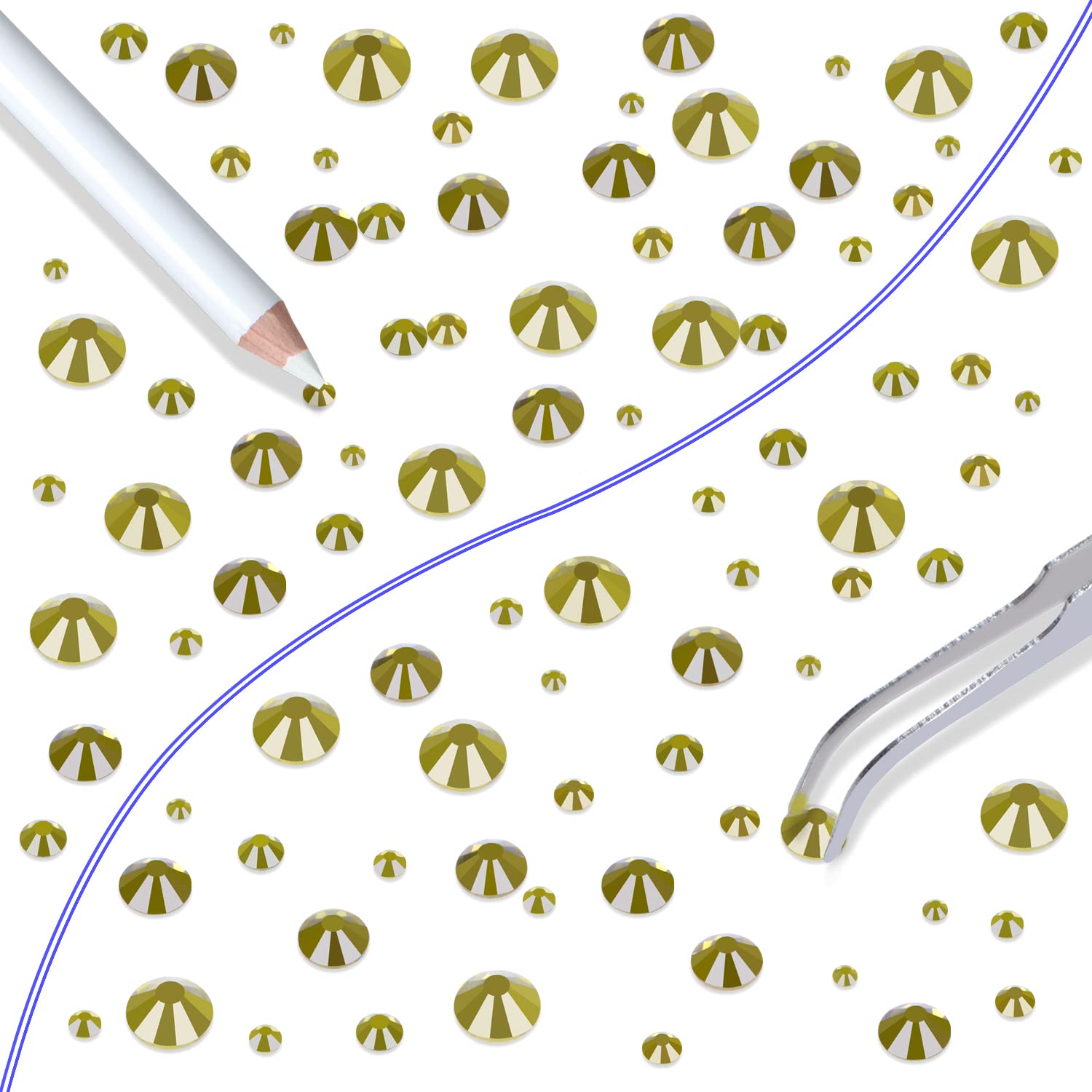 LPBeads 6000 Pieces Olivine Non Hotfix Rhinestones 6 Sizes Round Crystal Glass Flat Back Rhinestones with Tweezers and Picking Pen for Nail Art Crafts Clothes Bags DIY