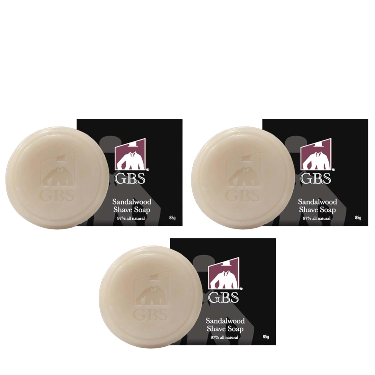 G.B.S 97% All Natural Shave Soap - Creates a Rich Lather Foam for Wet Shaving Experience (3 Pack Sandalwood) Birthday Gift