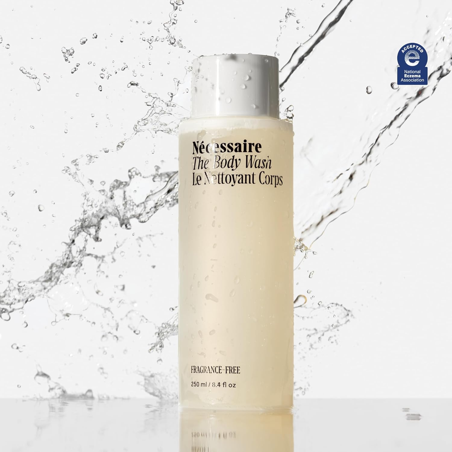 Nécessaire The Body Wash. Fragrance-Free. Multi-Vitamin Gel Cleanser. Nourish, Soften. Hypoallergenic. Dermatologist-Tested. No SLS/SLES. 250 ml / 8.4 fl oz