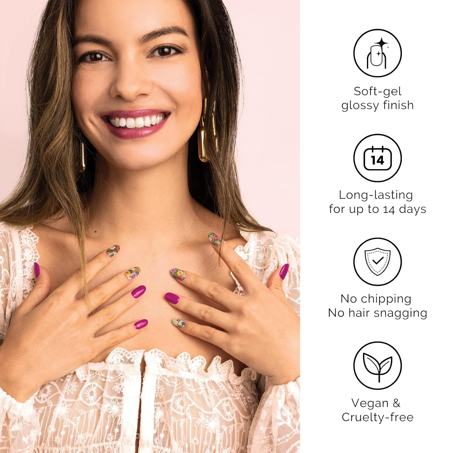 - SALON QULITY: Made of real nail polish 60% precured, soft to fit all nail shapes - Nailog semi cured gel nail strips with waterproof top gel last up to 2 weeks once cured with a UV lamp. Our gel nails are also extremely lightweight so they do feel like your own nails!
