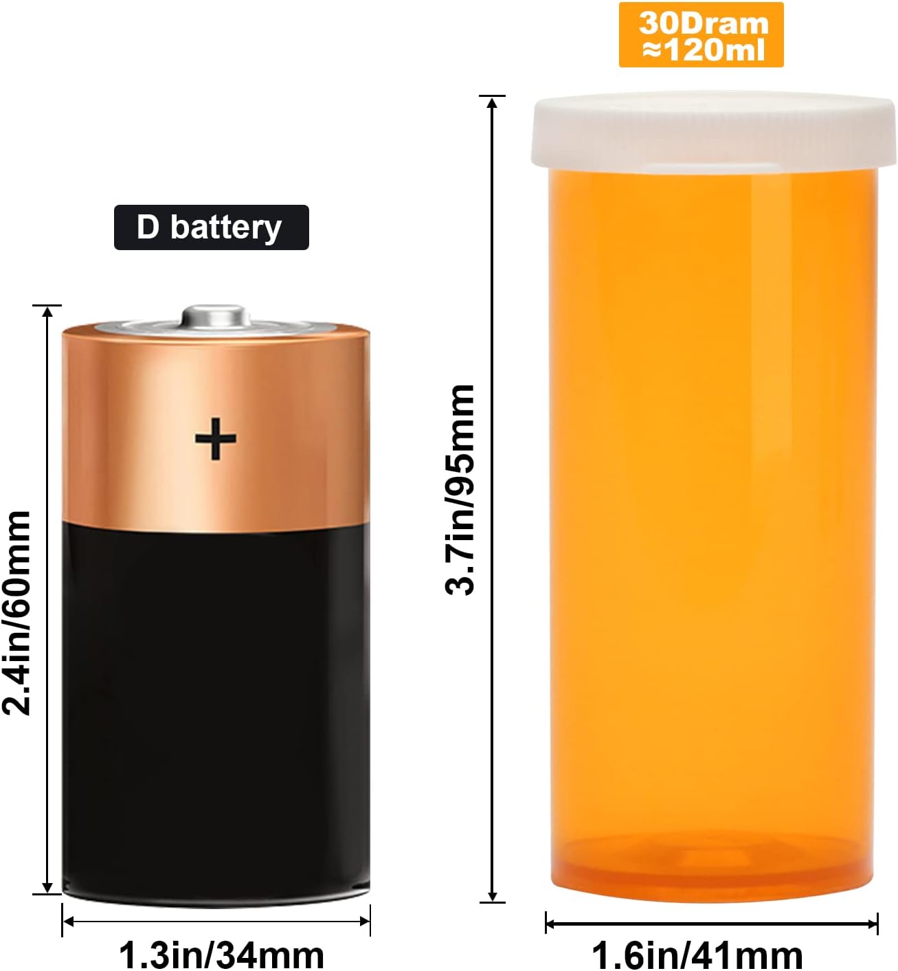 - Perfect Size: Each small plastic prescription vials measures approximately 1.6 x 3.7 inches (41 x 95 mm), 30 dram ≈ 120ml.