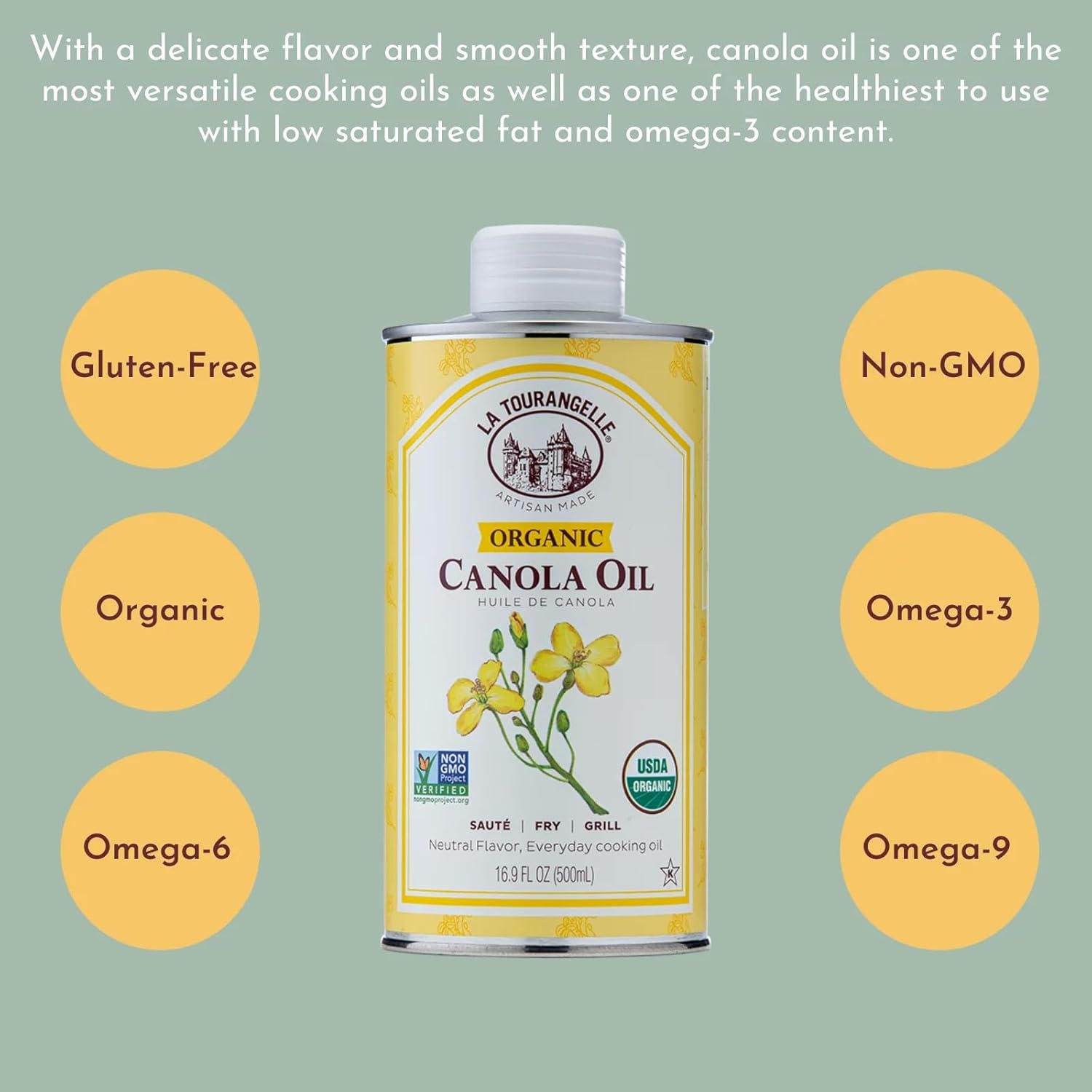- Traditional and Simple: La Tourangelle Organic Canola Oil is a high quality addition to your everyday cooking. From frying to sautéing, blended salad dressings or sauces, the possibilities are as limitless as your own creativity