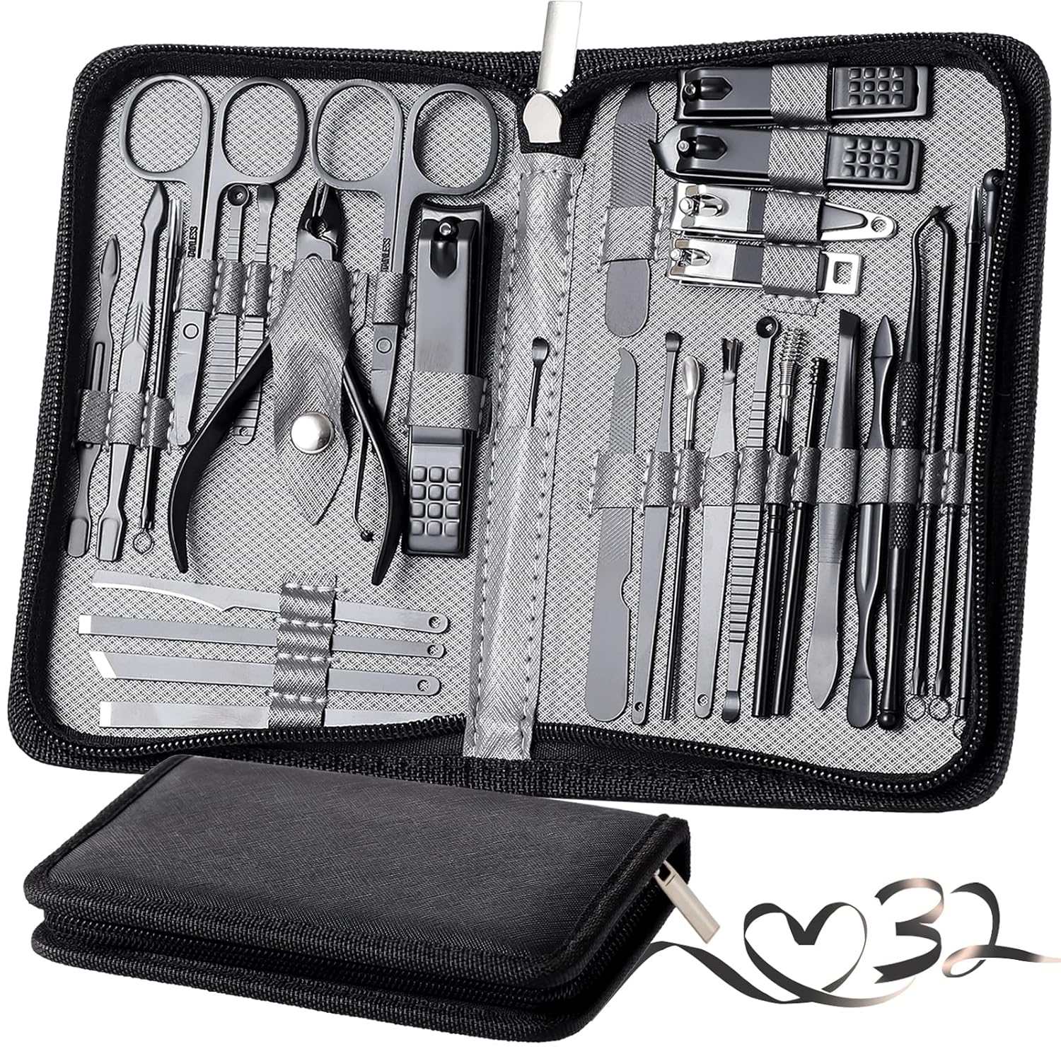 - 【32 PIECES MANICURE SET 】QLNEYSH Manicure and pedicure kit 32 in 1 is professional grooming care tools set Contains facials care, nail care, foot and toenail care tools. Daily use for men and women.