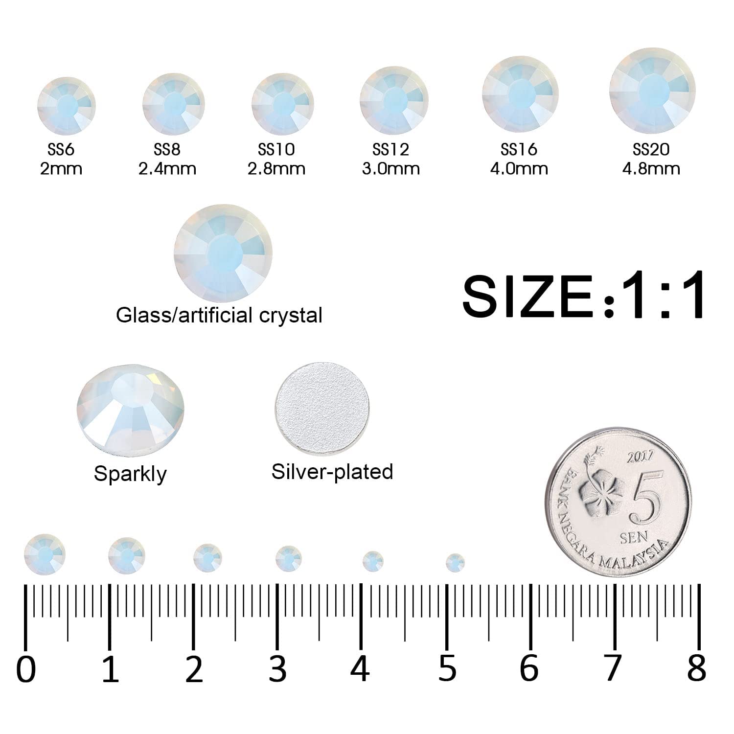 4240Pcs White Opal Flatback Rhinestones 6 Sizes Crystal Diamonds for Nail Art Crafts Clothes Shoes with Tweezers and Picking Pen