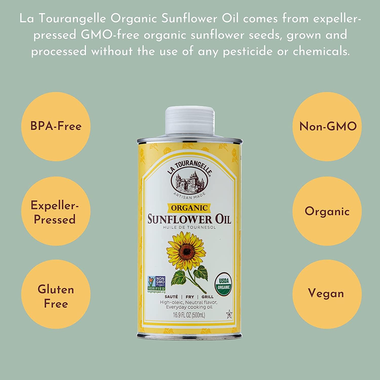 La Tourangelle, Organic High Oleic Sunflower Oil, Neutral Oil For Medium to High Heat Cooking and Skin Care, Non GMO, Pesticide and Chemical Free, 33.8 Fl Oz