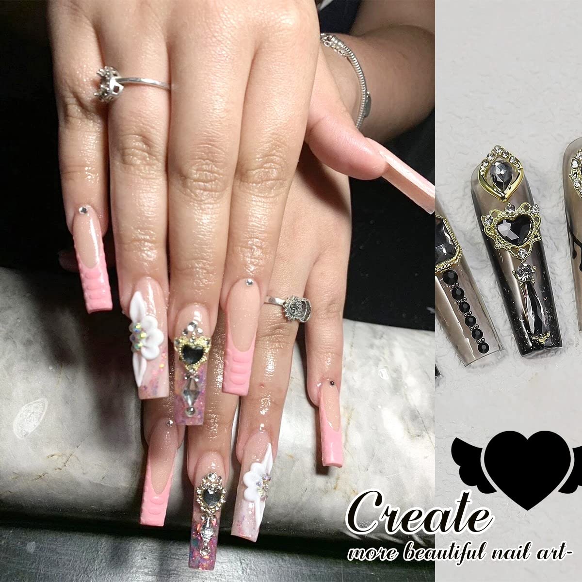 - ❤【3D Black Nail Jewelry & Safety Material】Our Luxury nail decorations are made of 3D alloy, hard and not easily break, have delicate surfaces and are well made with long-lasting brightness and gloss, light and easy to use for a long time, suitable for experienced manicurists and learners. 3D acrylic nail accessories are made of environmentally friendly materials, No damage to fingernails, any style of nails can use it.
