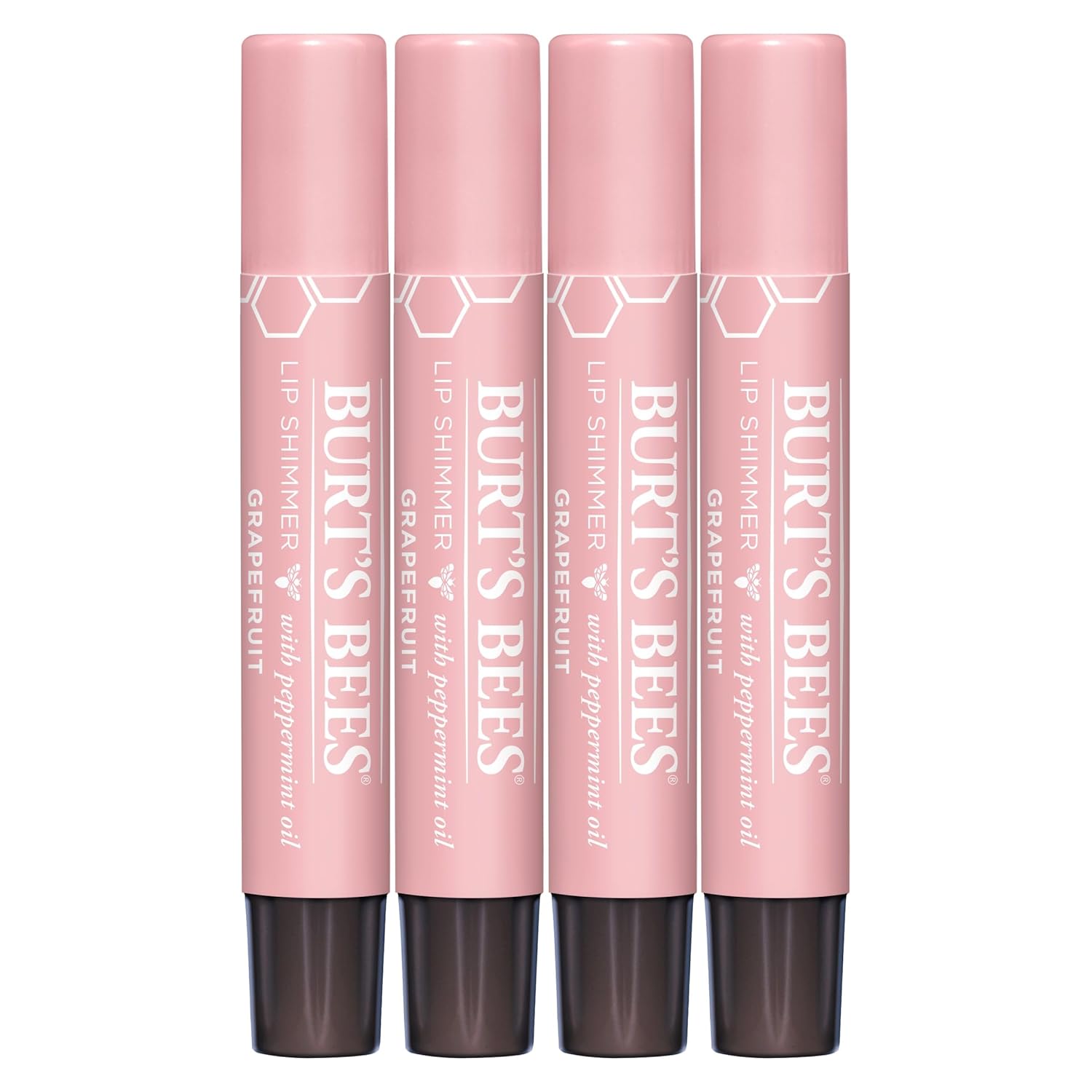 Burt's Bees Shimmer Lip Tint Set, Tinted Lip Balm Stick, Moisturizing for All Day Hydration with Natural Origin Glowy Pigmented Finish & Buildable Color, Grapefruit (4-Pack)