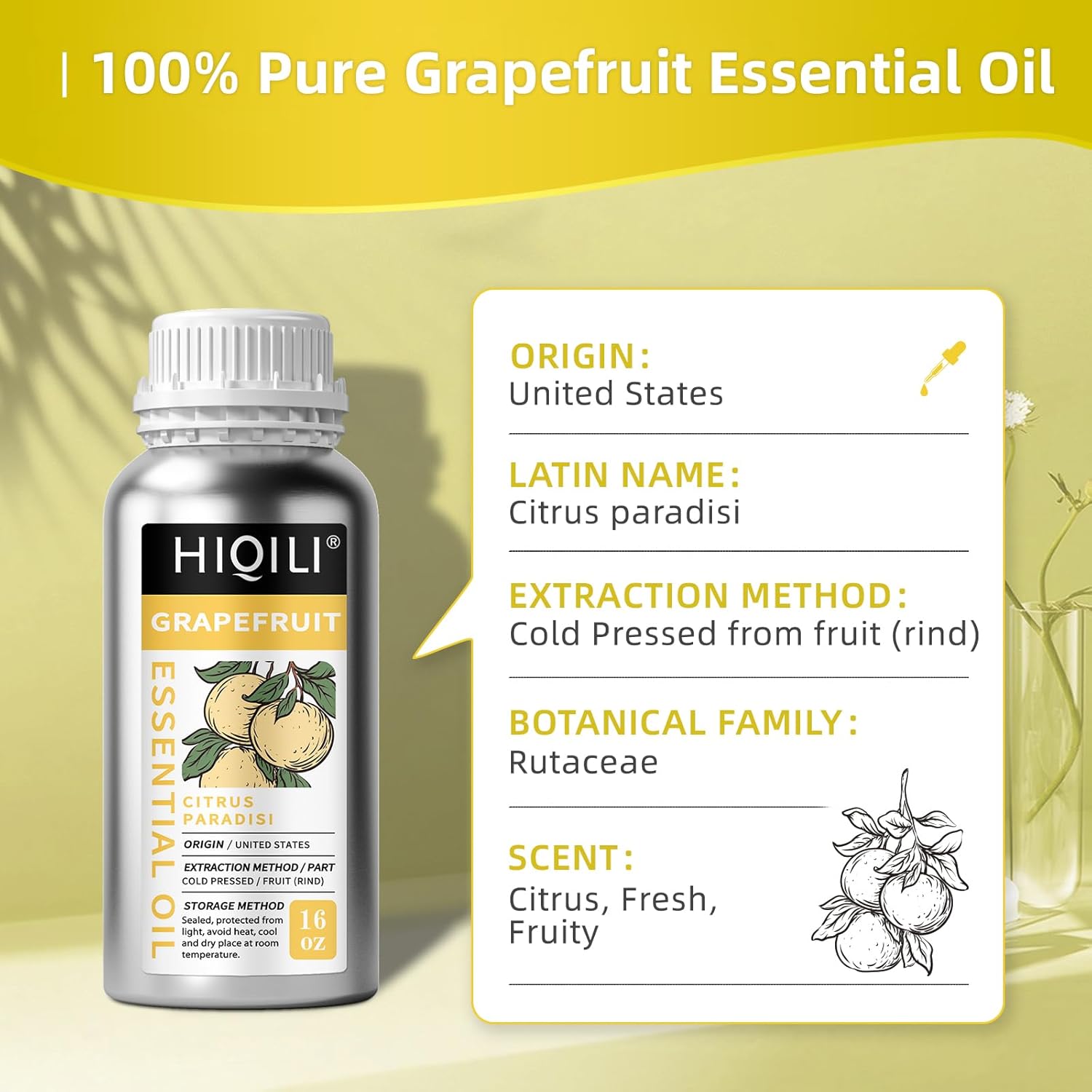 HIQILI 16 Fl Oz Grapefruit Essential Oil, for Diffuser, Skin Care, 100% Pure and Natural