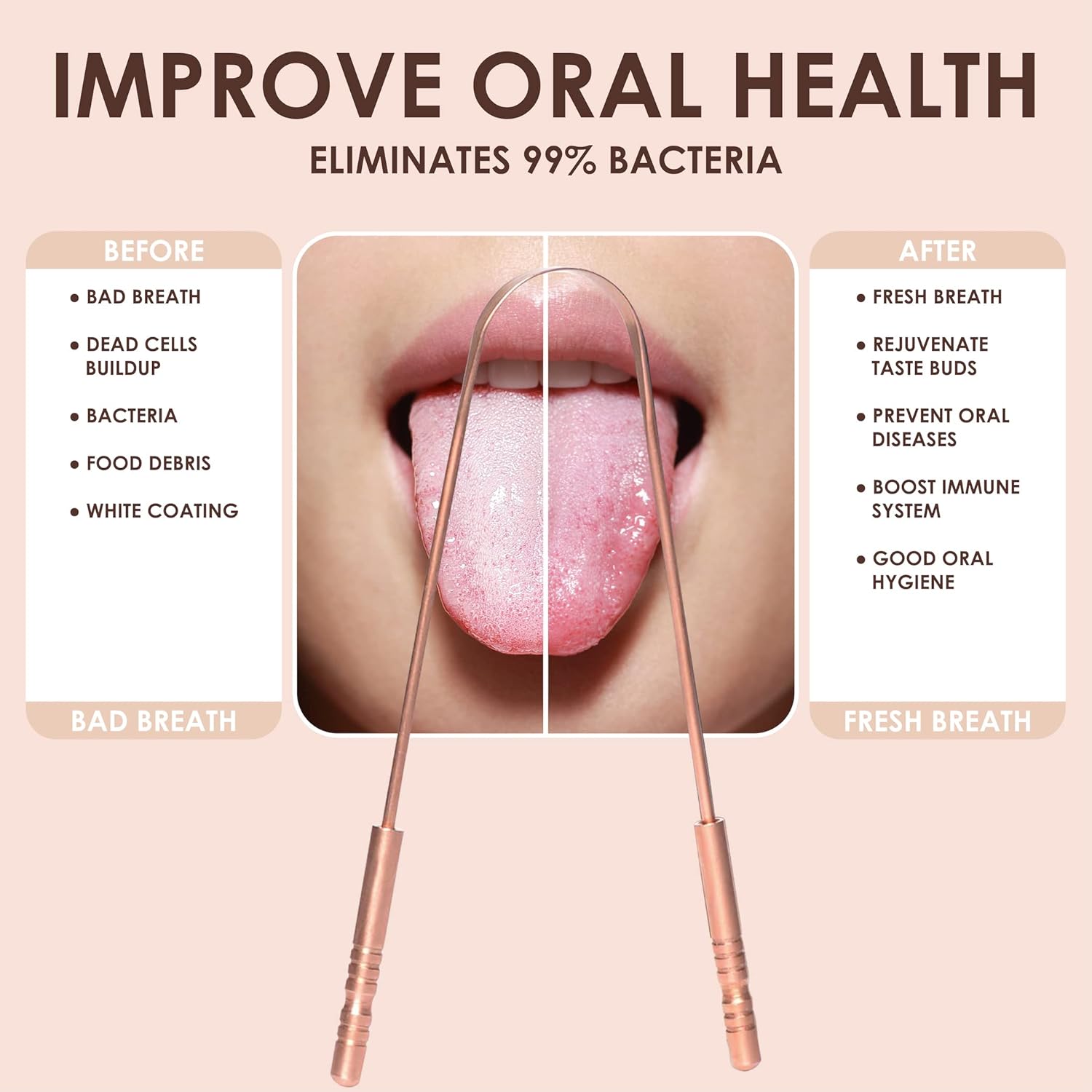 - ✅【REDUCE BAD BREATH】- Tired of bad breath and white substances on your tongue? Clean your tongue in seconds with these high quality, natural copper tongue scraper. With a quik scrape, our tongue cleaner is fast and easy way to clear out the white, coated layer on your tongue for fresh breath and better overall health. TruLife, metal tongue scraper is premium quality made with 100% medical grade copper material will give you the cleanest tongue (and freshest breath) time and time again.
